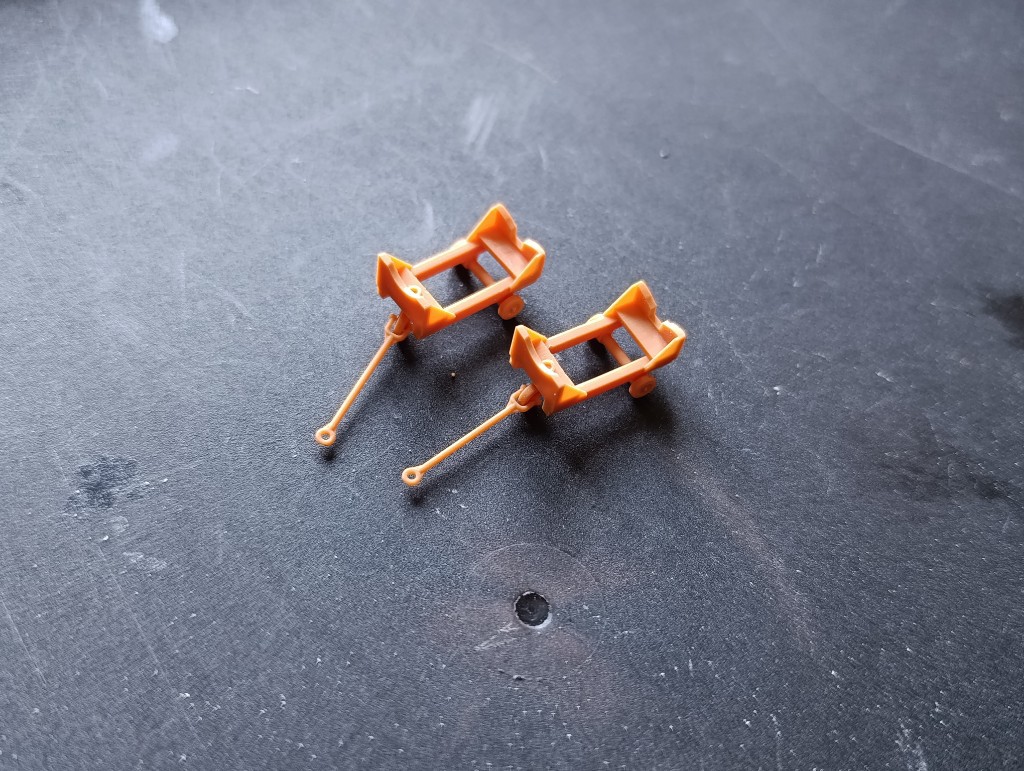 Die Teile sind dabei sehr winzig, der Bau geht aber äußerst schnell voran und die kleinen Rollwagen sind in wenigen Minuten fertig.