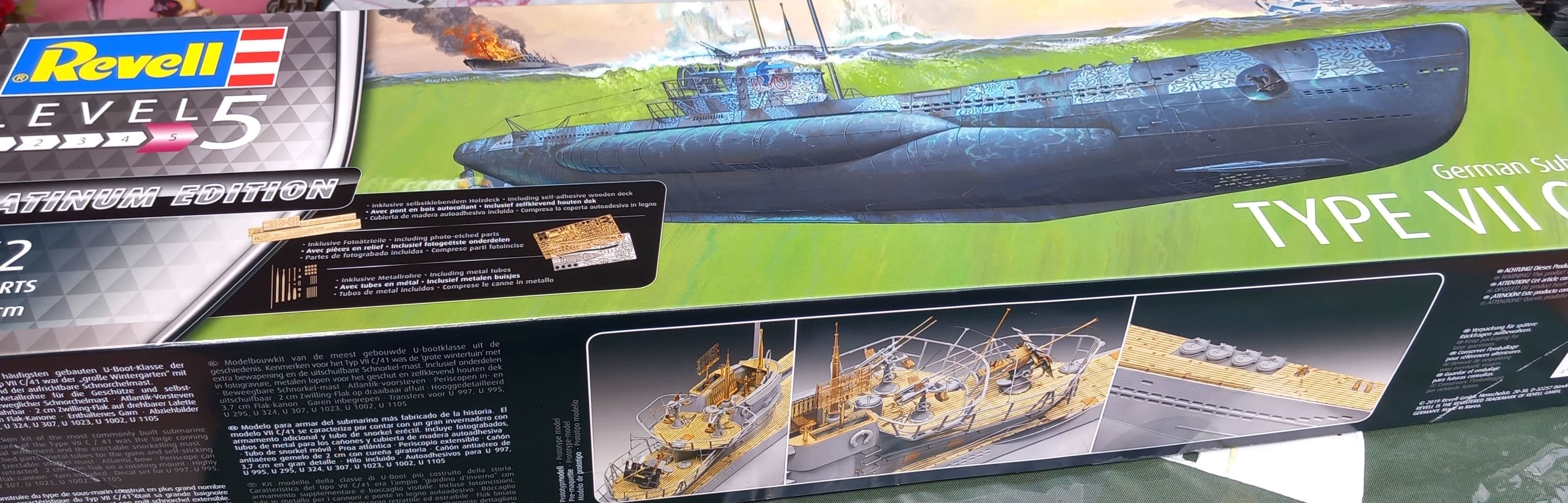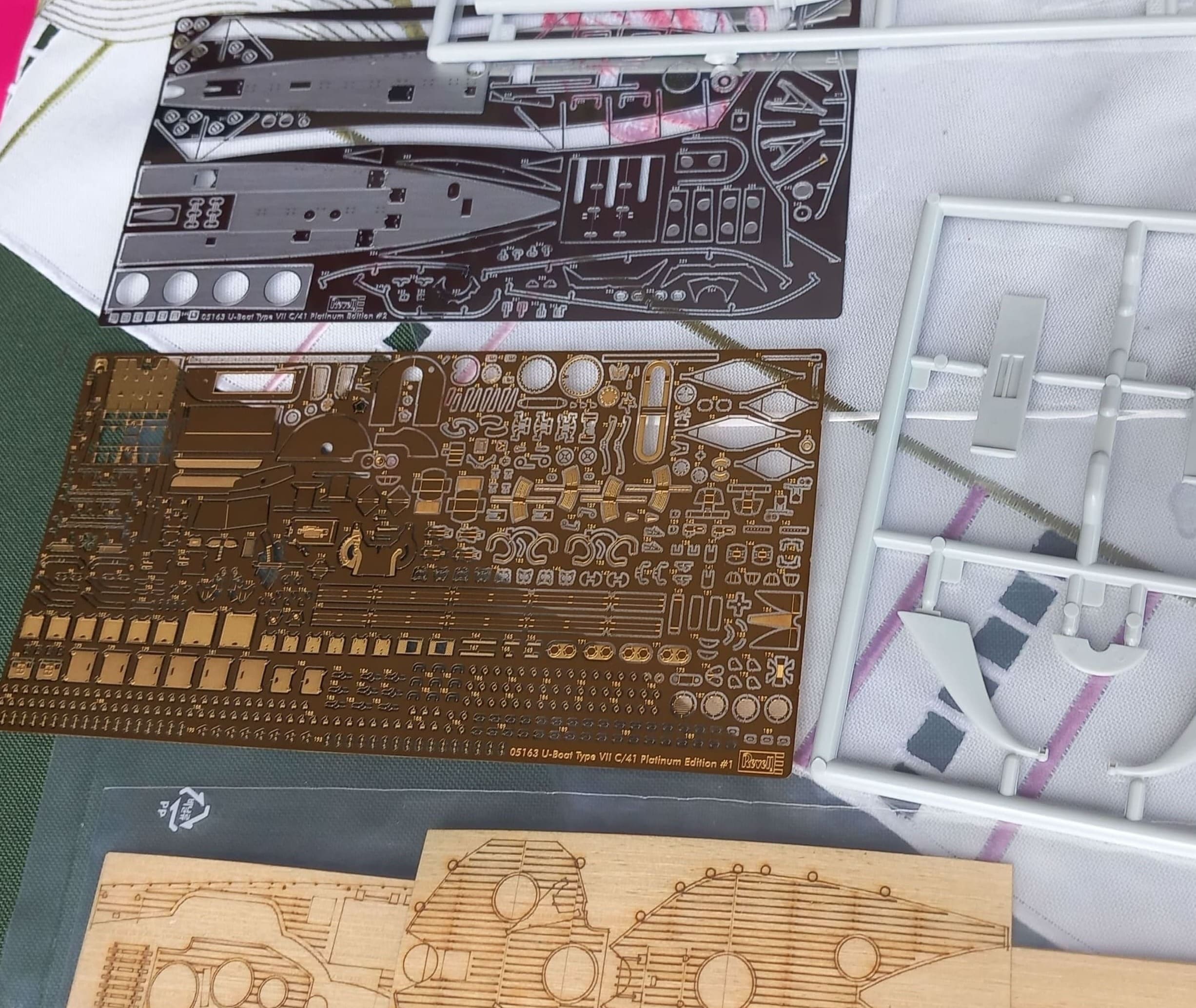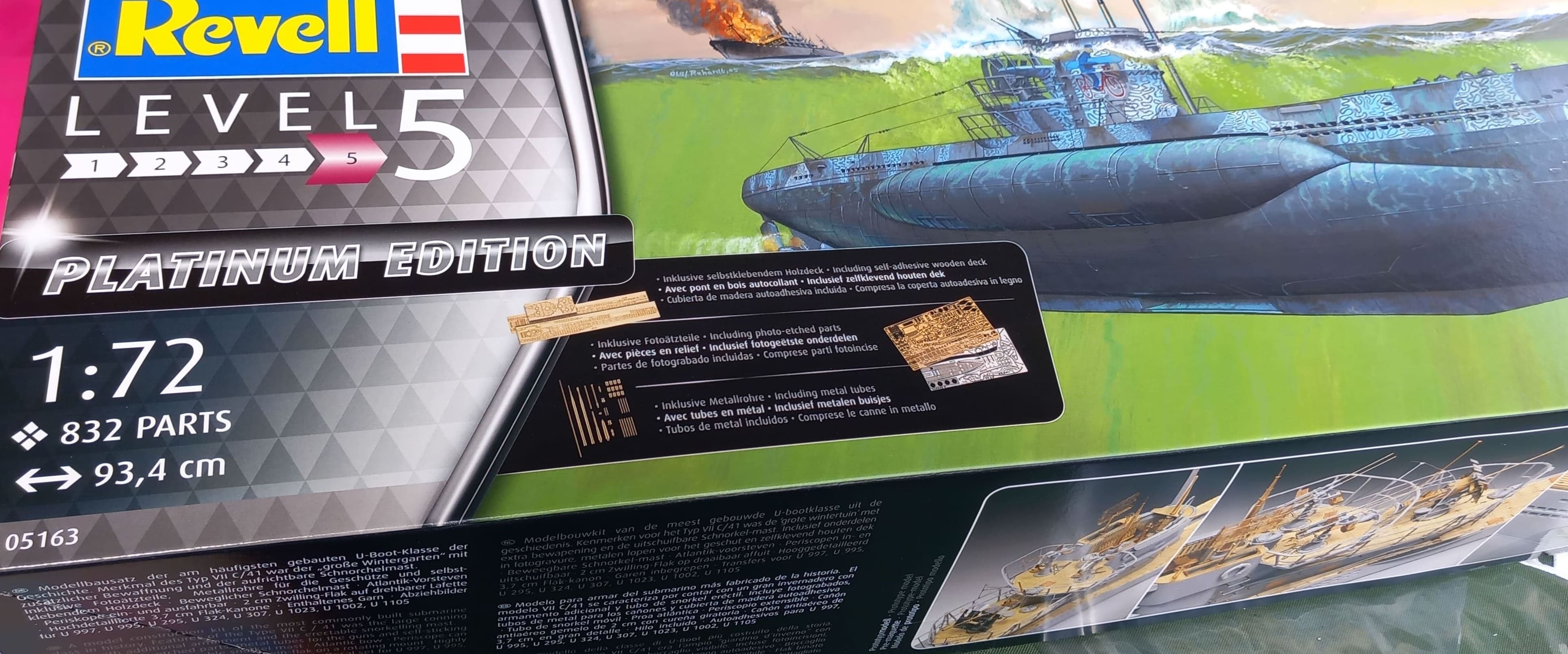 Herzlich willkommen zur Vorstellung meines neuen Projektes, dem Bausatz des U-Bootes VII C/41 in Platinum Version von Revell in 1/72. Der Bausatz enthält 832 Teile, etwas mehr als 200 sind Plastikteile, ca. 630 sind Ätzteile (Metallteile).