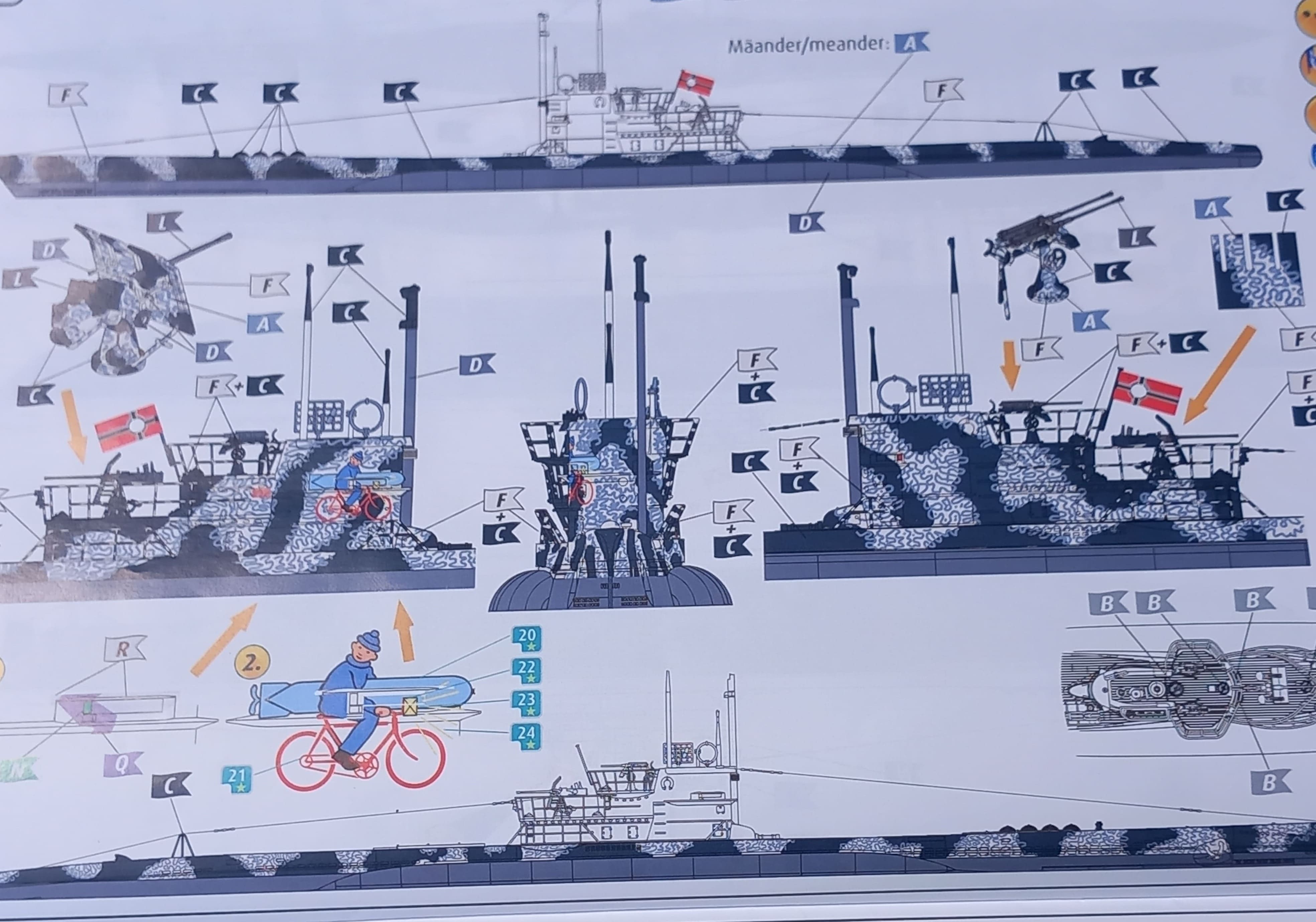Ich werde die Version der U 997 bauen, dessen Kommandant Hans Lehmann war. Es können zig andere Versionen gebaut werden. An der U 997 fasziniert mich vor allen Dingen die Mäander-Tarnbemalung. Bereits auf den ersten Blick fallen mir Fischhäute an diversen Plastikteilen auf. Die Ätzteile hingegen machen einen Super Eindruck. Die Anleitung macht den Endruck, als wäre sie bereits 40 Jahre alt. Auf dem Cover steht 2019 aber die komplette Darstellung der Bauabschnitte ist überhaupt nicht räumlich und nur schwer zu deuten. Naja, mal sehen.
