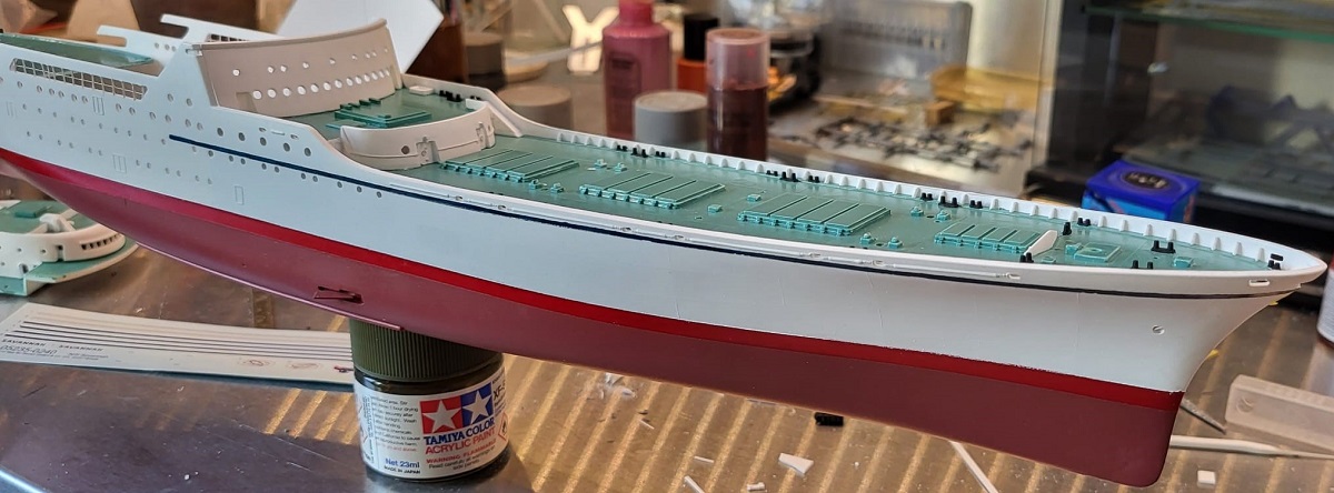 habe mich entschlossen nicht den Kleber zu benutzen aber die Blaue linie zu mahlen, auch werde ich Sie mit geschlossener Laderaume darstellen