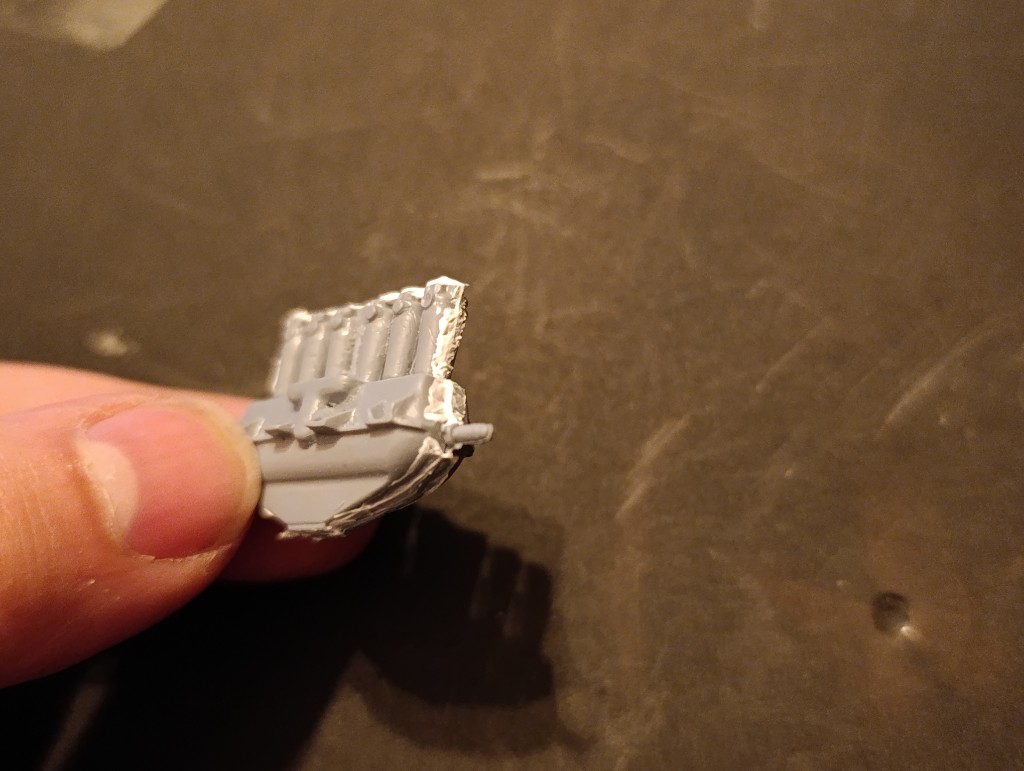 Der Motor wurde dahingehend verbessert, dass ich Patronentaschen in 1:35 zerschnitten habe und nun die neuen Zylinderköpfe darstellen.