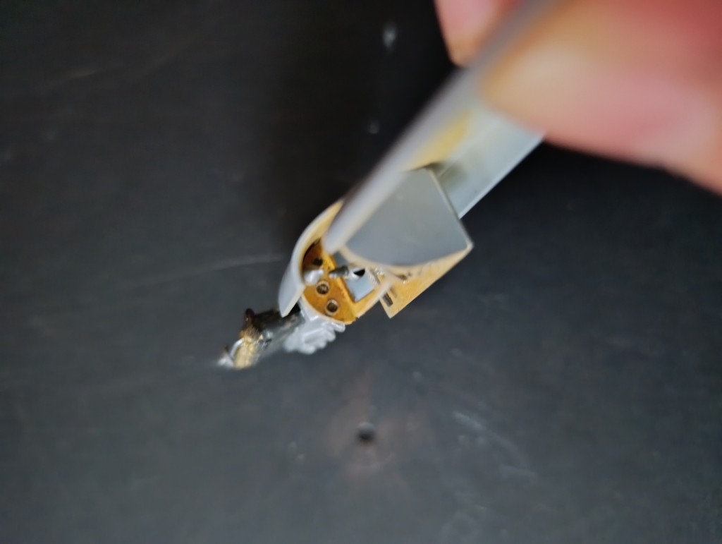 Auch die Seitenwände haben einige PE-Teile, Querstreben, die Pistole (aus einem Dragon Figurenset) und der Gashebel.