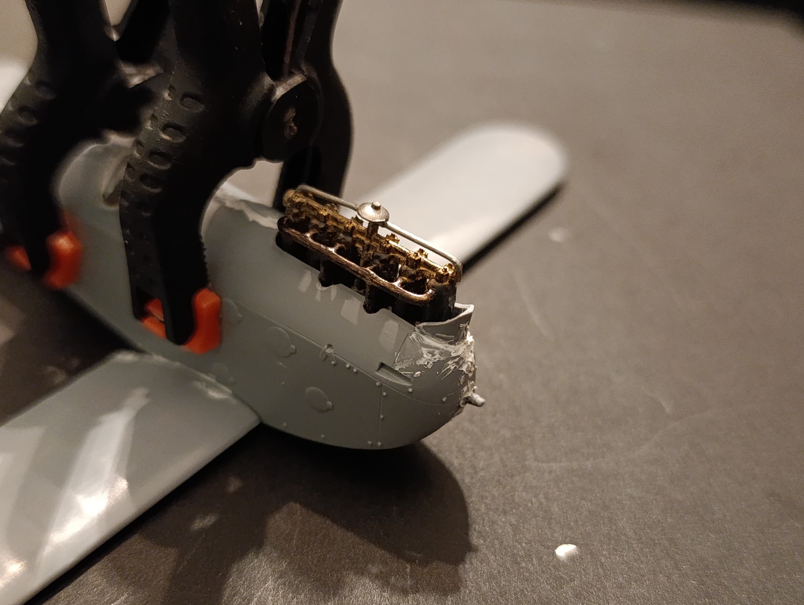 Da es in 1:48 ist, würde ich den Motor detailliert bauen. Im Netz findet man sehr viel Bilder vom Hiero - Motor bzw. seiner Ausgangskonstruktion, dem Austro Daimler. Ansonsten war das Kurbelgehäuse aus Aluminium und die angeschraubten Zylinder aus Gusseisen.