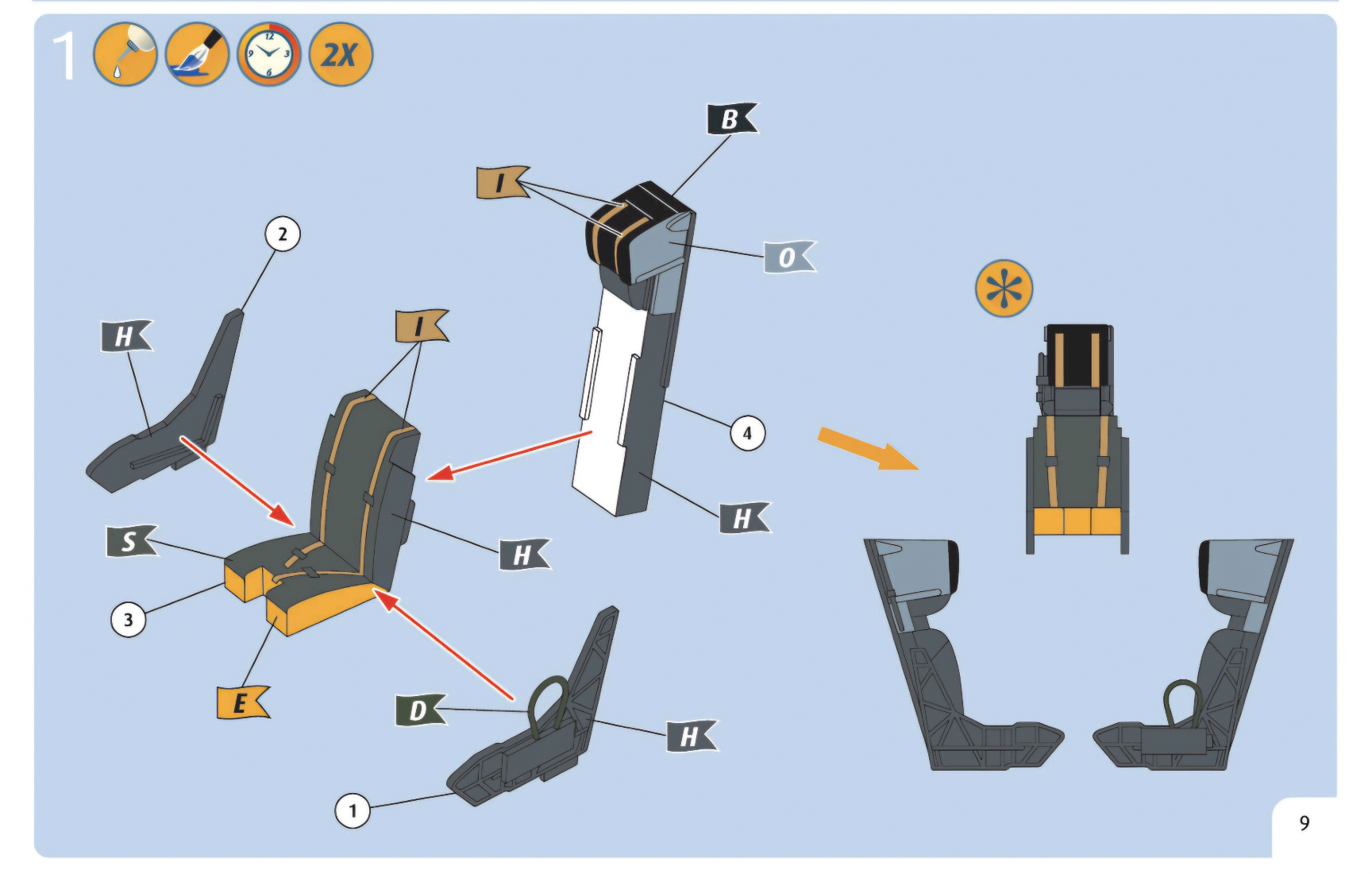 Ich grundier den zusammengebauten Sitz nachdem die Einzelteile verbaut sind. Danach kamen die Farben wie beschrieben drauf. Allerdings hab ich das noch etwas angepasst.