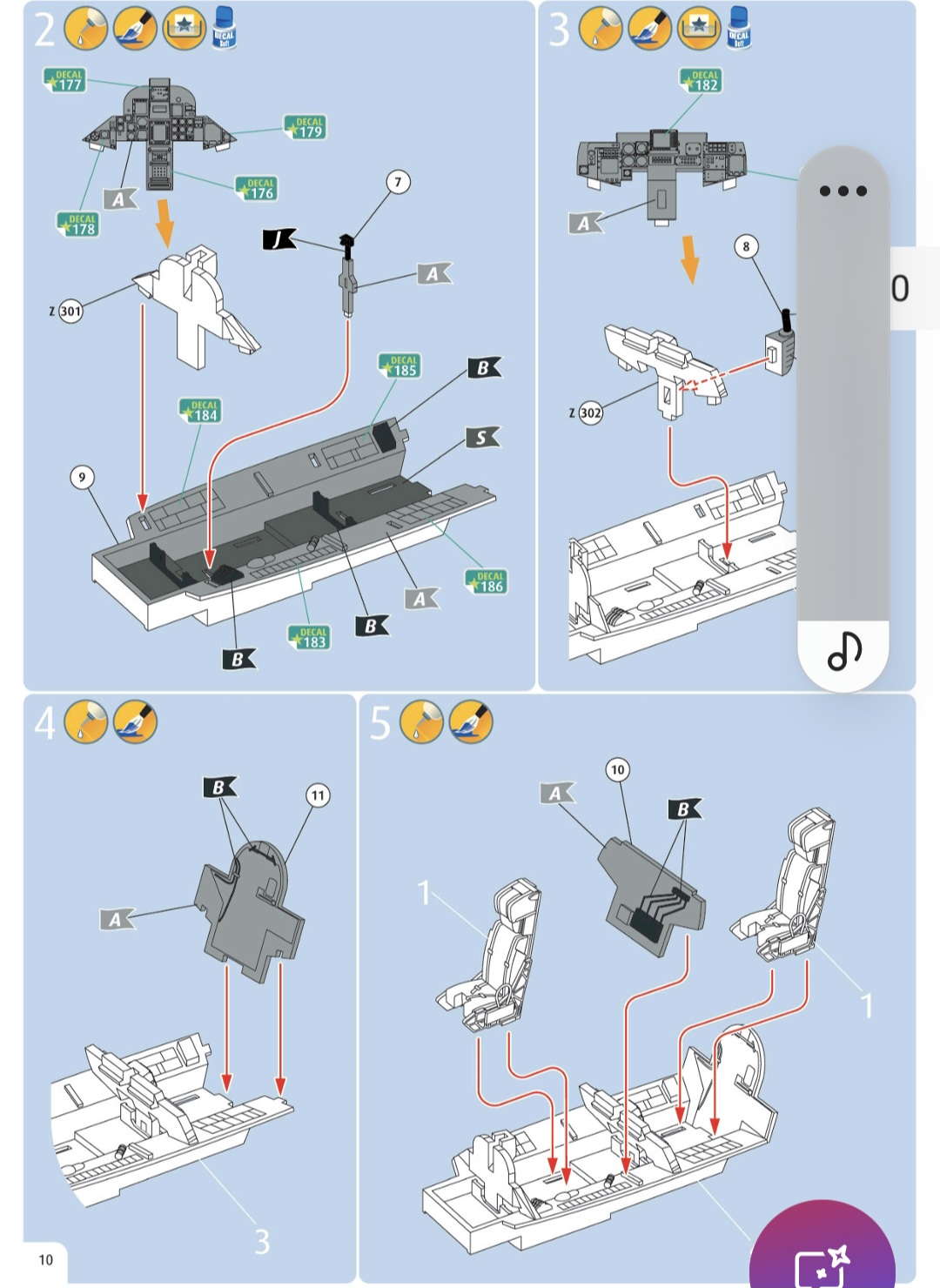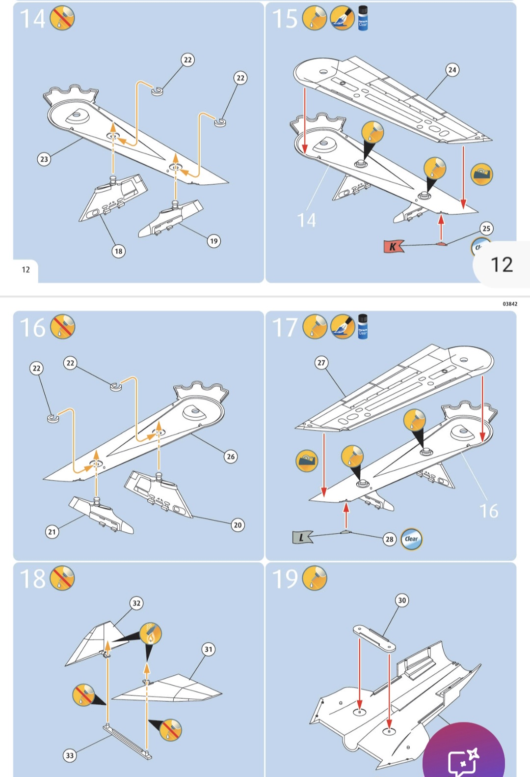 Also Revell#03842 benötigt laut Bauanleitung ohne decals 70 Bauschritte. Ich hab vor vielen Jahren mal den F.3 ADV gebaut. Da ist man bereits im 7. Bauschritt schon vor den Dacals angekommen. Im Bausatz für den ASSTA 3.1 gibt's auch sehr viele neue Teile und eine komplett andere Konstruktion für die Verstellung der Schwenkflügel. Am Ende werd ich mal den F.3 ADF (Revell #4375) neben den neuen ASSTA 3.1 stellen. Ich bin gespannt wie das mal aussieht.