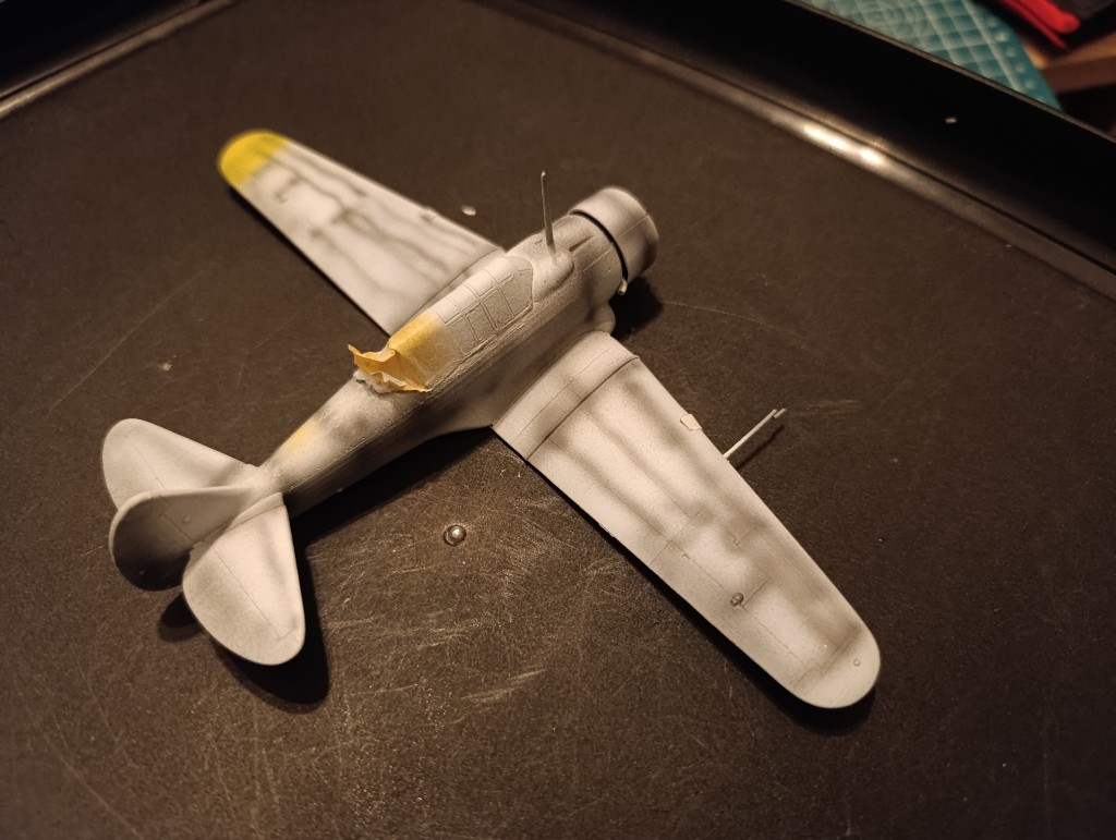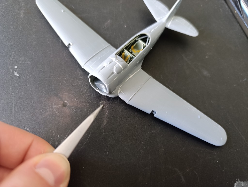 So jetzt geht es an die Details, hier habe ich noch zwei Flächen die ich gerne nochmal sprühen wollen würde, es handelt sich um die Lauffläche auf dem Flügel.