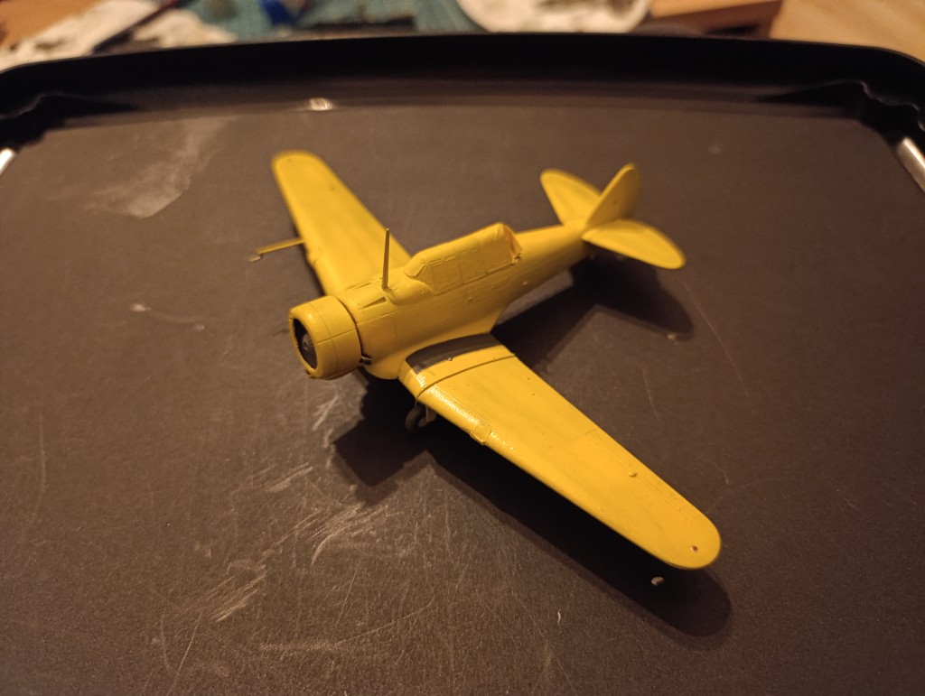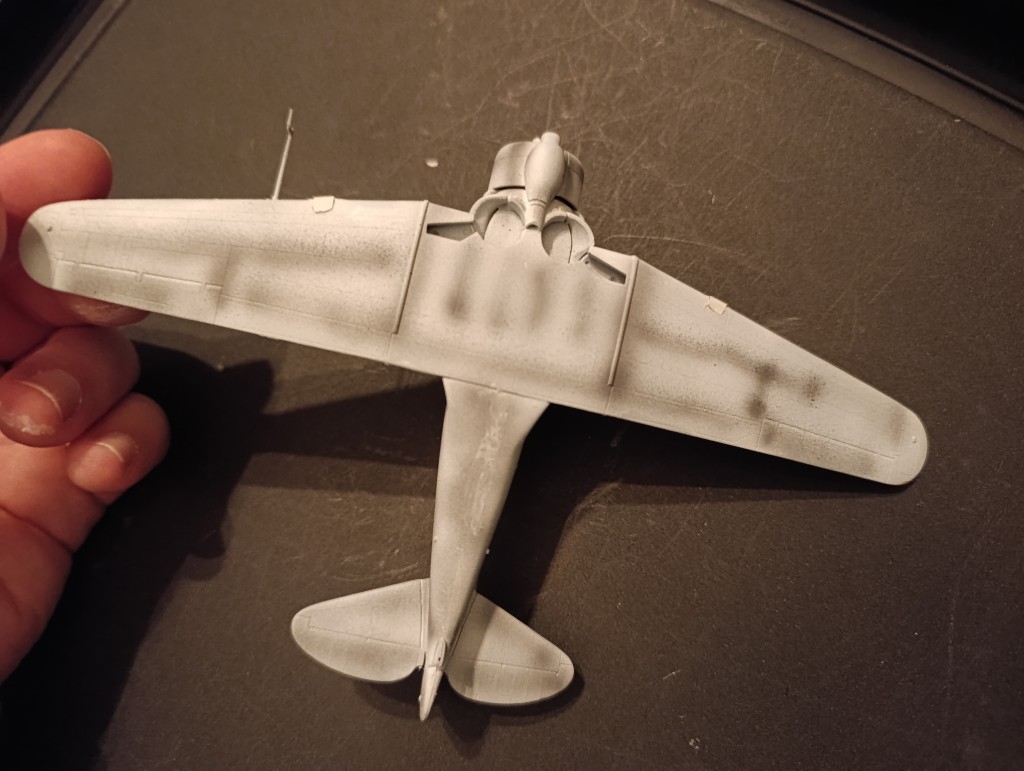 Nun war das endlich soweit, die Wirraway kam zum Lackieren. Die Grundierung dieses Mal weiß gehalten mit grauen preshading