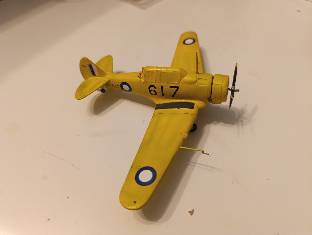 Da das ganze gleich passt, würde ich den Bau nutzen um meine drei Jahre alte britische T-6 etwas bachzuarbeiten. Unter anderem fehlt eine Fahrwerksklappe und die Tarnung muss etwas aufgebessert werden.