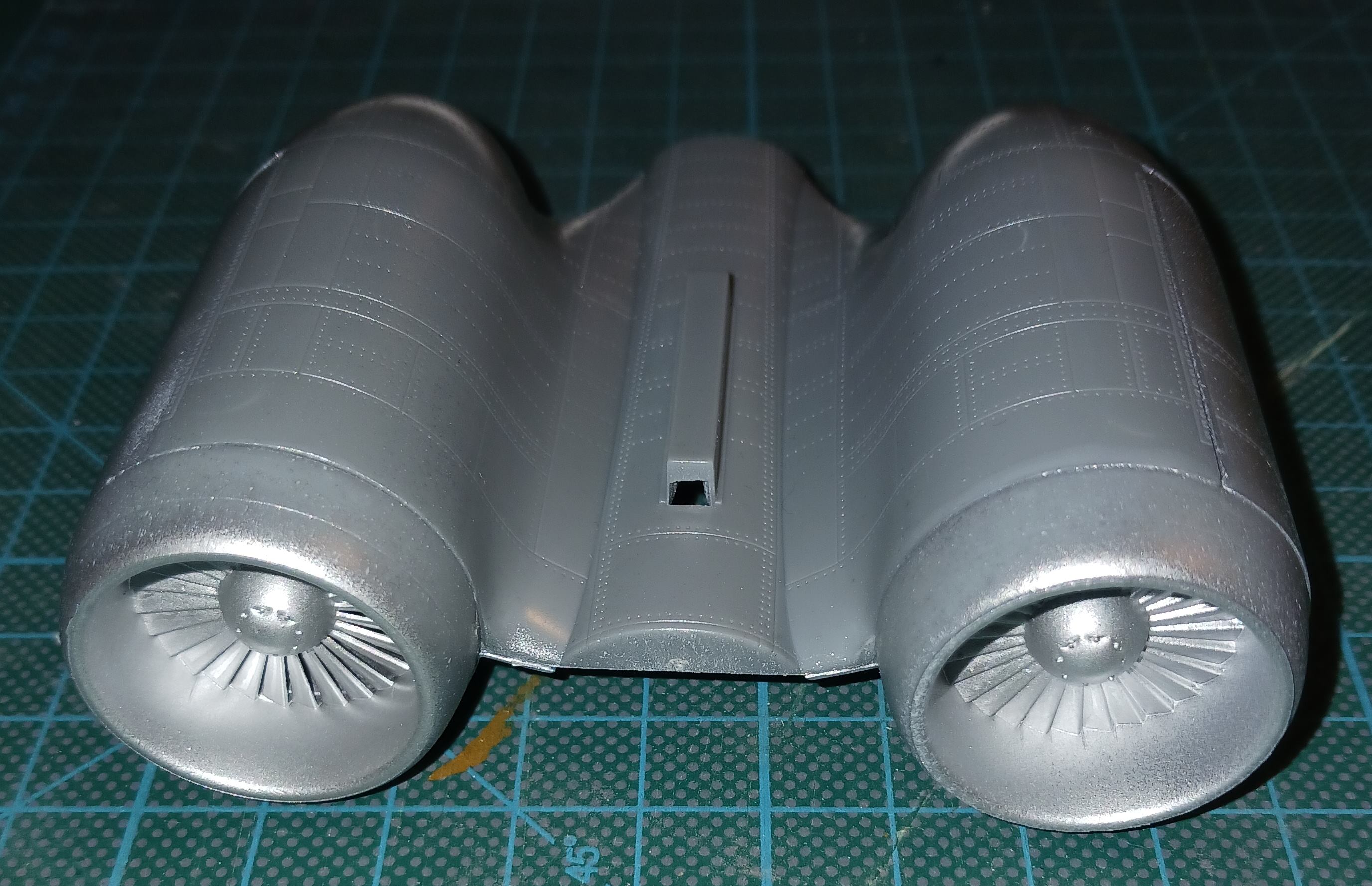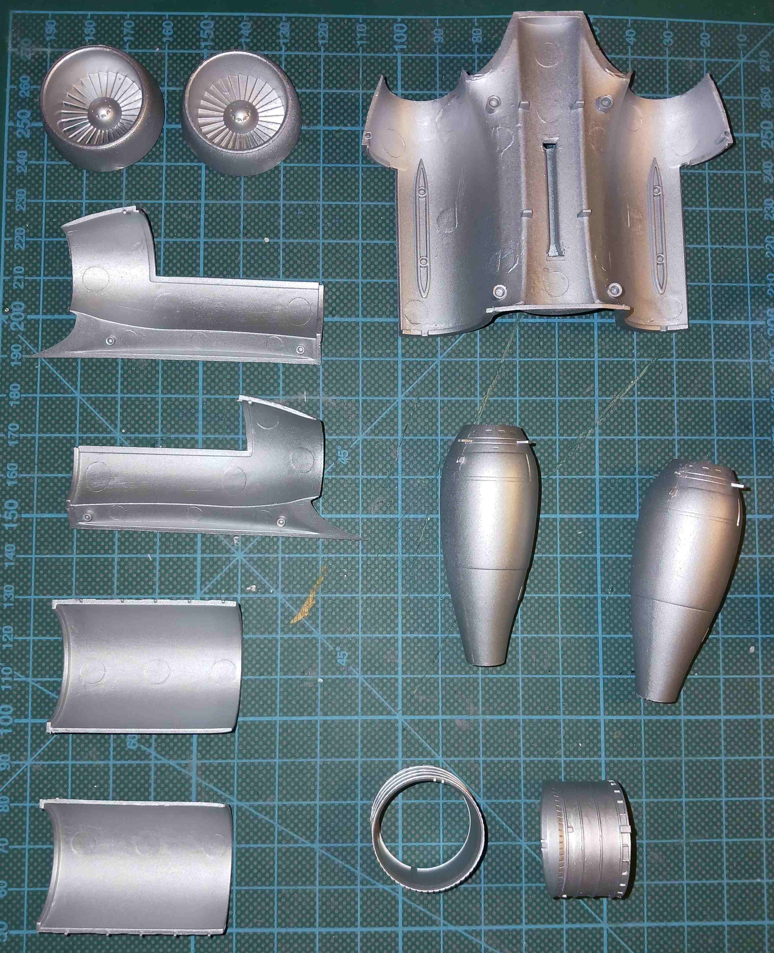 In den letzten Tagen habe ich mich um die Triebwerke gekümmert. Zunächst habe ich alles innen in Stahl, bzw Aluminium lackiert.