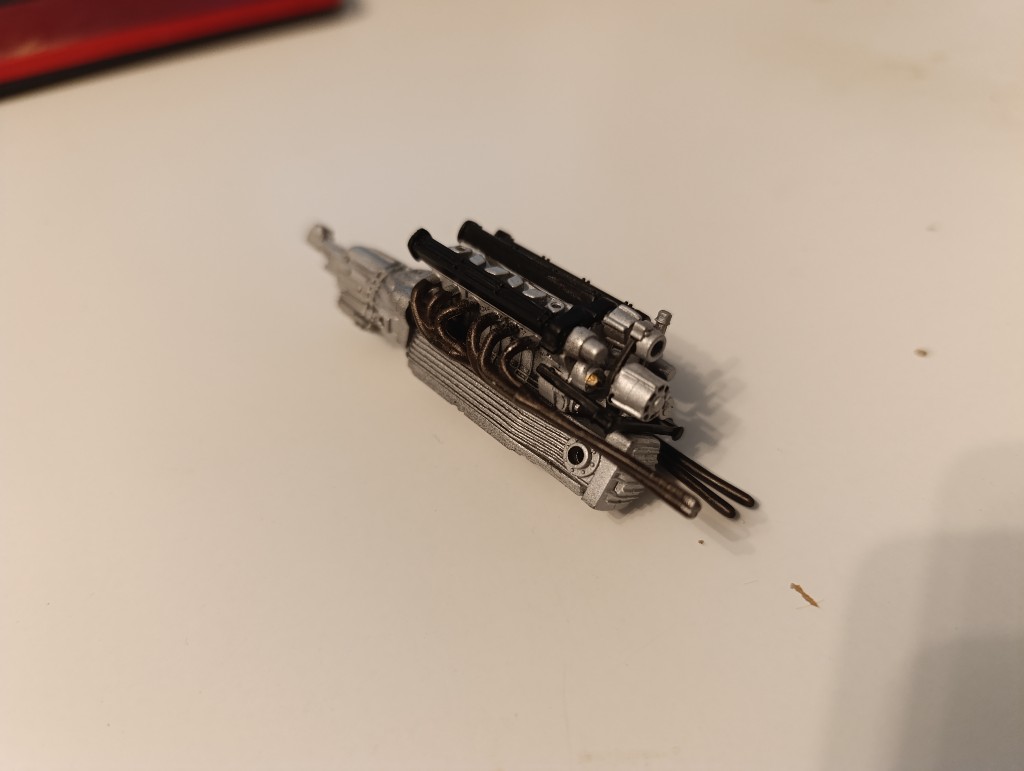 Der Motor ist auch mit Metallfarben lackiert und Details sind soweit auch schon bemalt.