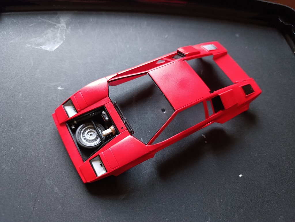 Der Countach erschien mir aus mehrerlei Gründen nie begehrlich, weder damals noch heute. Er ist aber zweifellos eine Ikone des Sportwagenbaus und wir haben hier einen interessanten und offenbar sehr anspruchsvollen Bausatz.