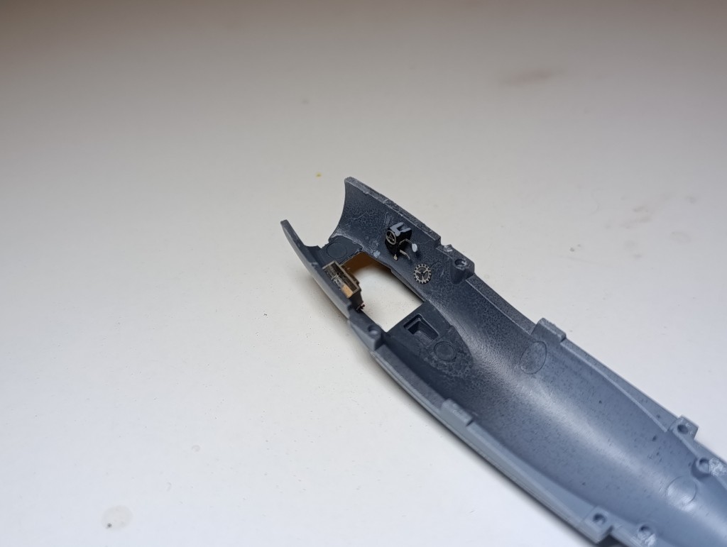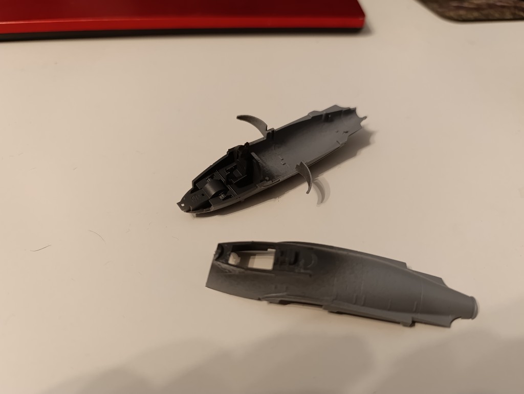 Interessant ist die Aufteilung der Bauteile. Hier wurde der Rumpf Horizontal geteilt. Meiner Meinung nach eine gute und alternative Lösung und lässt damit bessere versäuberung zu.