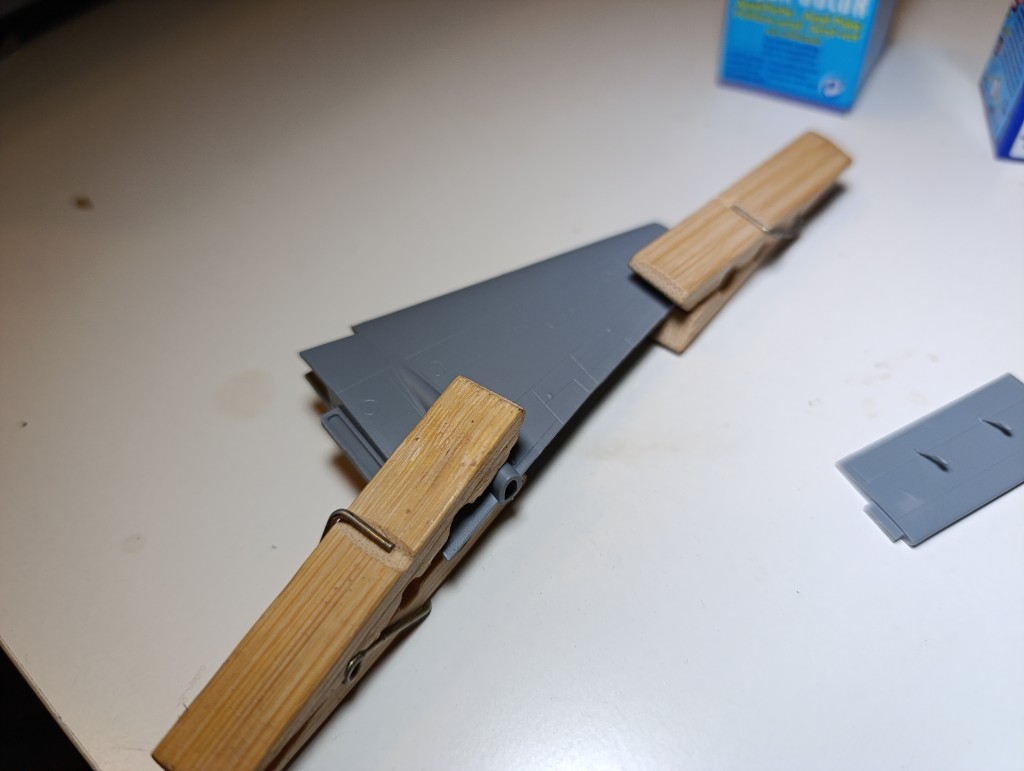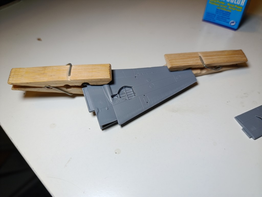 Nachdem ich den Rumpf wieder zusammen gesetzt habe, könnte ich auch die Flügel soweit vorbereiten. Die Passung war meiner Meinung nach nicht schlecht.
