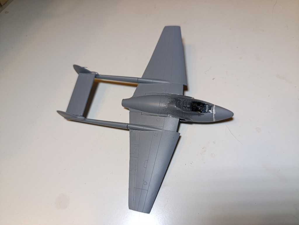 Ja das stimmt und ich bin selbst Recht erstaunt, dass ich diese Spalte soweit entfernt bekommen habe. Das hat echt gut funktioniert. Da das Flugzeug zunächst komplett mit Mettal lackiert wird, habe ich das ganze mit Schwarz glänzend grundiert und keine Unsauberkeiten mehr gefunden