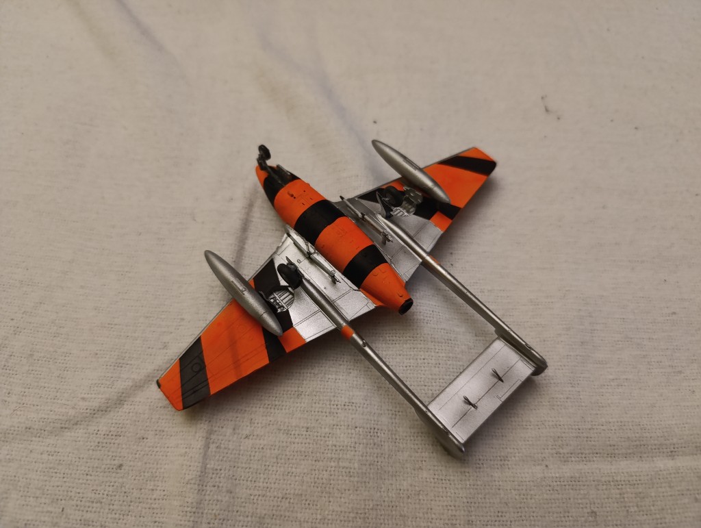 So jetzt kann es eigentlich nur noch vorwärts gehen. Und da mir das Ergebnis besser gefallen hat, als erwartet, freue ich mich auf das fertige Ergebnis. Vorsichtshalber werden ich aber nochmal die Panelines nachgeavieren, da die Farbe auf den Flügeln mindestens vier Sichten dick ist und ich glaube da hat sich einiges zugesetzt.