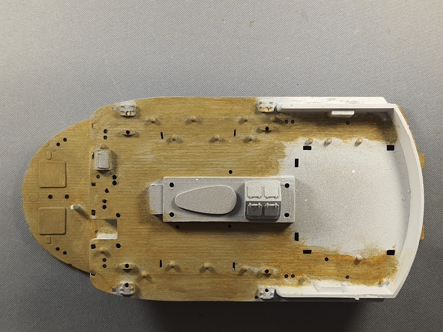 Da ich noch Regenabweiser als Ätzteile habe wurden die aufgedruckten abgeschliffen und die Bullaugen Öffnungen gesäubert und in eine Runde Form gebracht. Der Rumpf ist soweit sauber gegossen und erfordert nur wenig Nacharbeit.