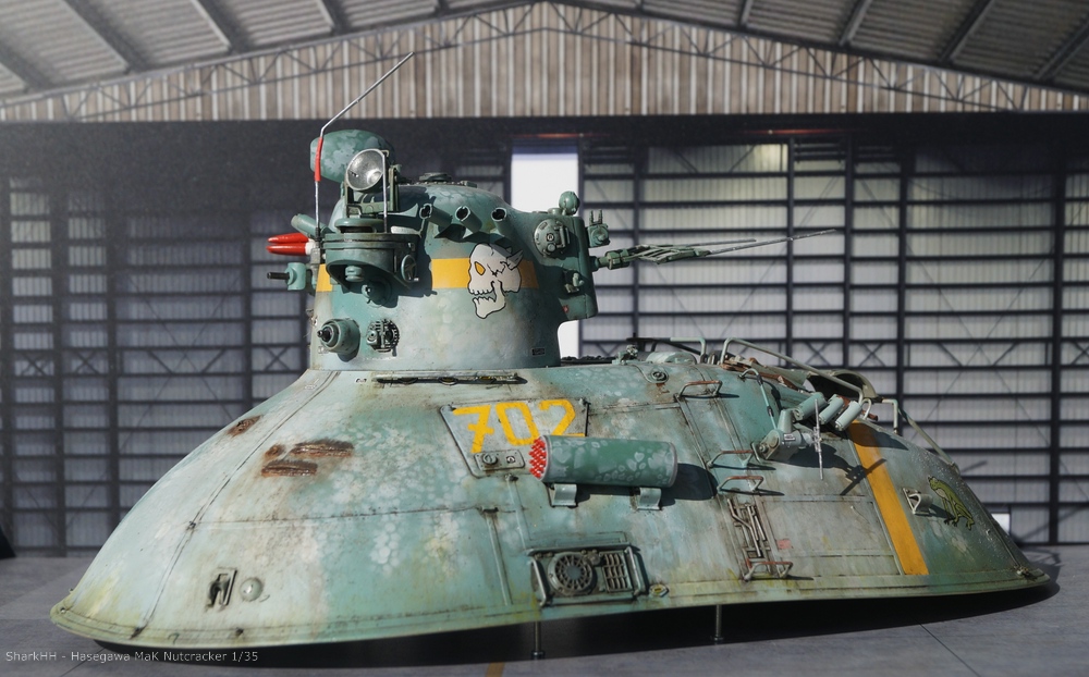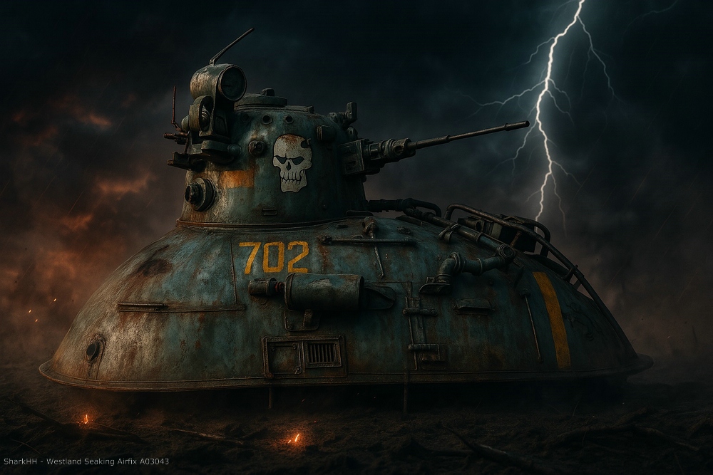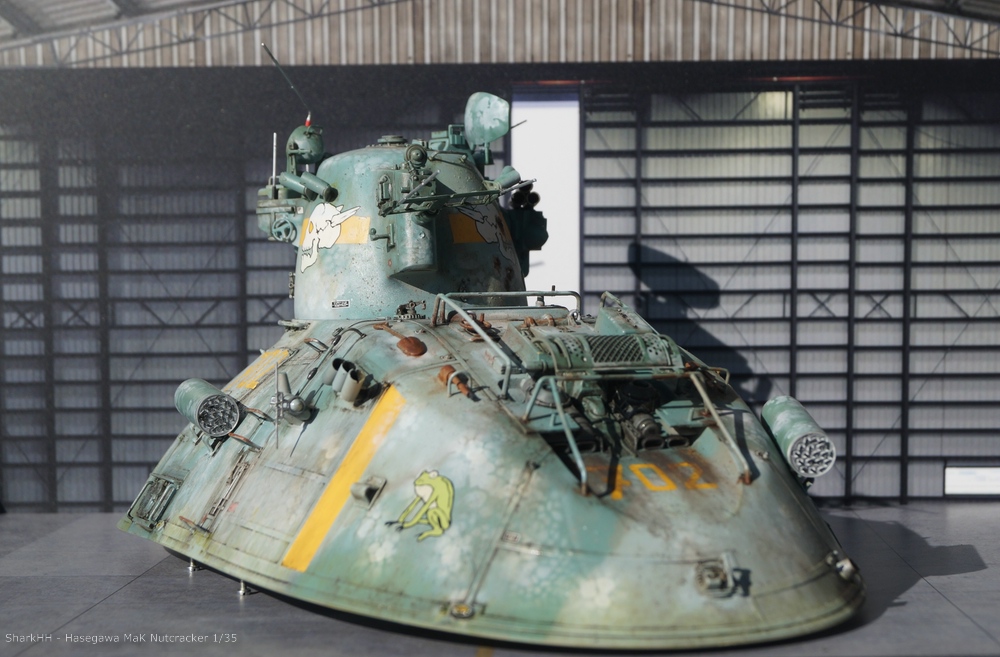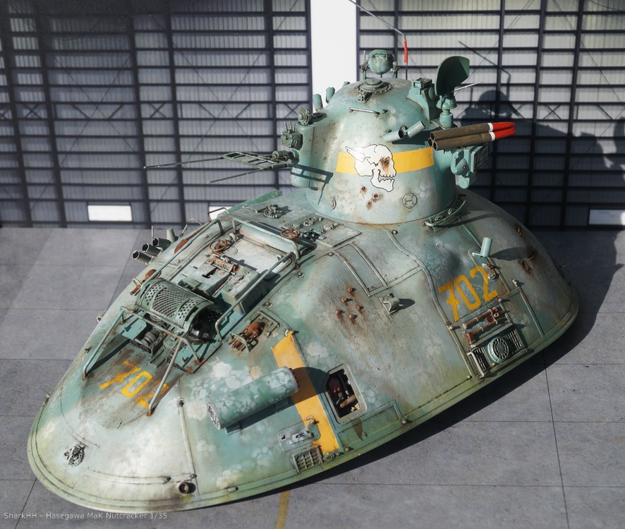 Und wer sich fragt, was die beiden Schrauben sollen. Es handelt sich ja um ein Fahrzeug, dass über den Boden schwebt. Damit das in einem möglichen Diorama besser passt, habe ich die Schrauben eingebaut, um das Schweben zu simulieren.
