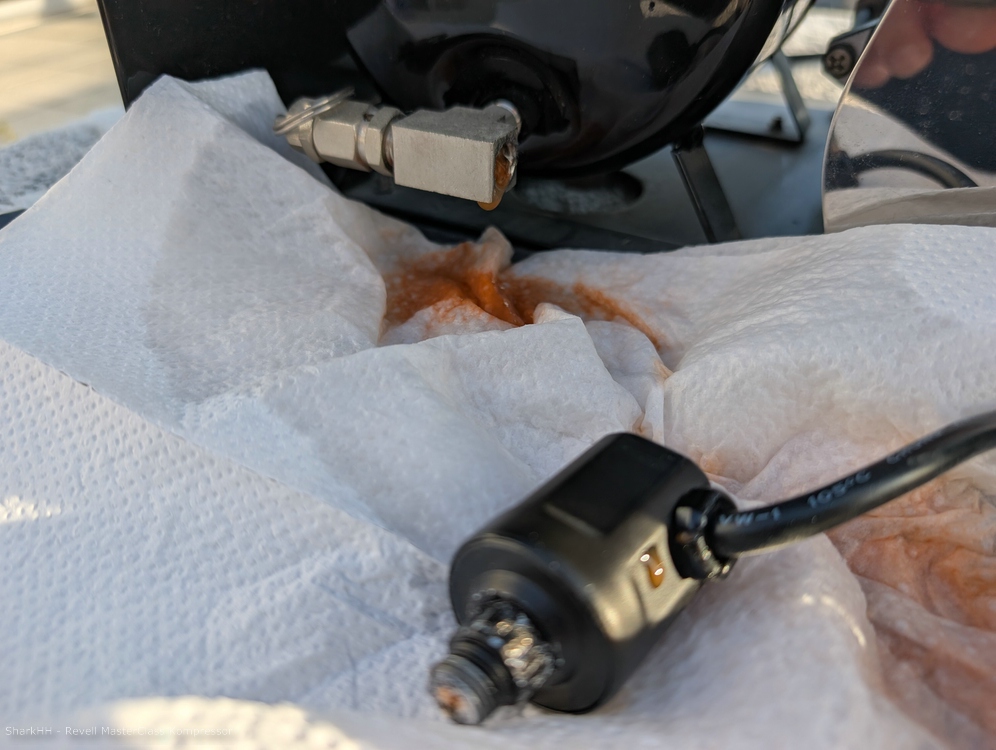 1. Der Konstrukteur von dem Kompressor hier, hat den Druckschalter auch an der denkbar schlechtesten Stelle, nämlich ziemlich weit unten angebracht, dass da die Suppe reinläuft ist quasi vorprogrammiert.