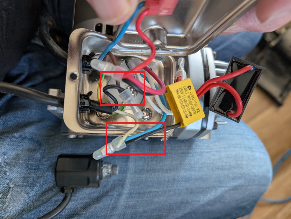 Nach dem Öffnen der Strombox war es dann doch nicht so schlimm, die zwei Kabel neu zu verdrahten. Frickelig war das rausfummeln der Kabeldurchführung.