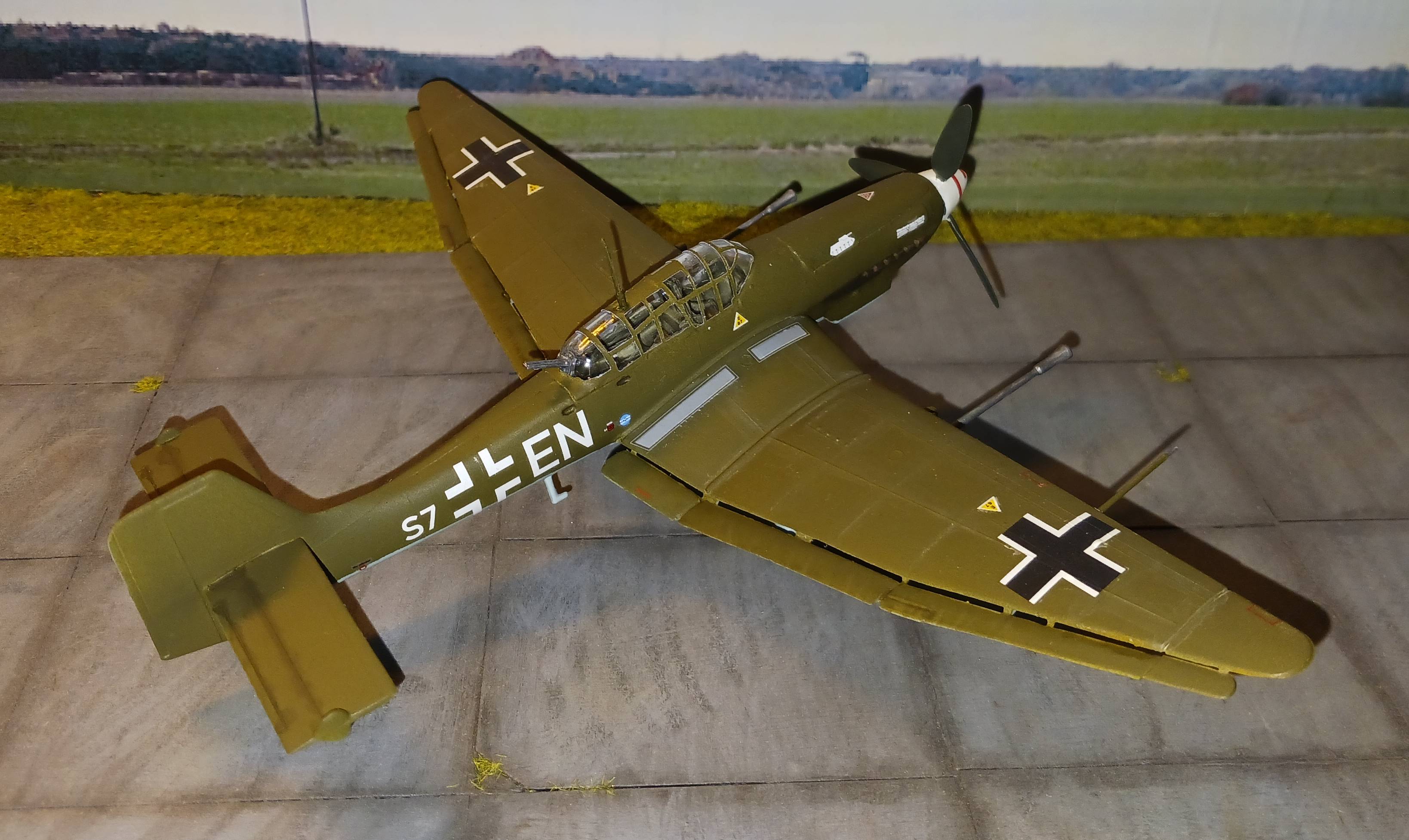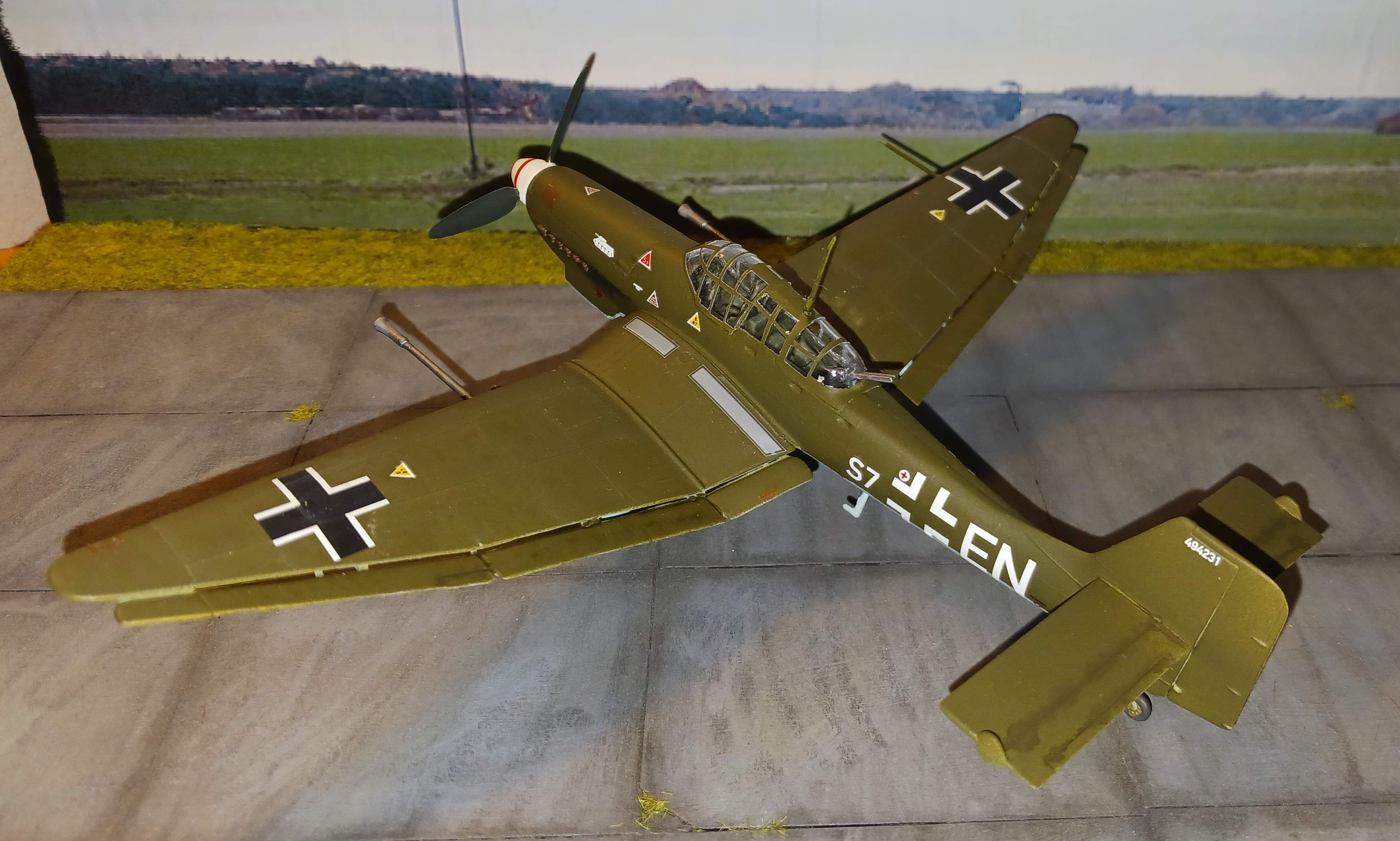 heute zeige ich euch die Junkers Ju 87G Tank Buster von Revell in 1:72. Der Bausatz ist ein echter Klassiker, der zum ersten Mal 1975 erschien und seither viele male neu aufgelegt wurde. Der 50 Jahre alte Bausatz bietet erhabene Strukturen und eine etwas reduzierte Detaillierung, die aber für 1:72 noch in Ordnung ist. Es gab relativ viele Fischhäute zu entfernen, aber das war kein großes Problem. Die Passgenauigkeit war ganz ordentlich; die Klebenähte mussten fast alle verschliffen werden, aber auch das war schnell gemacht. Nach kurzer Bauzeit konnte ein schönes Modell fertiggestellt werden.