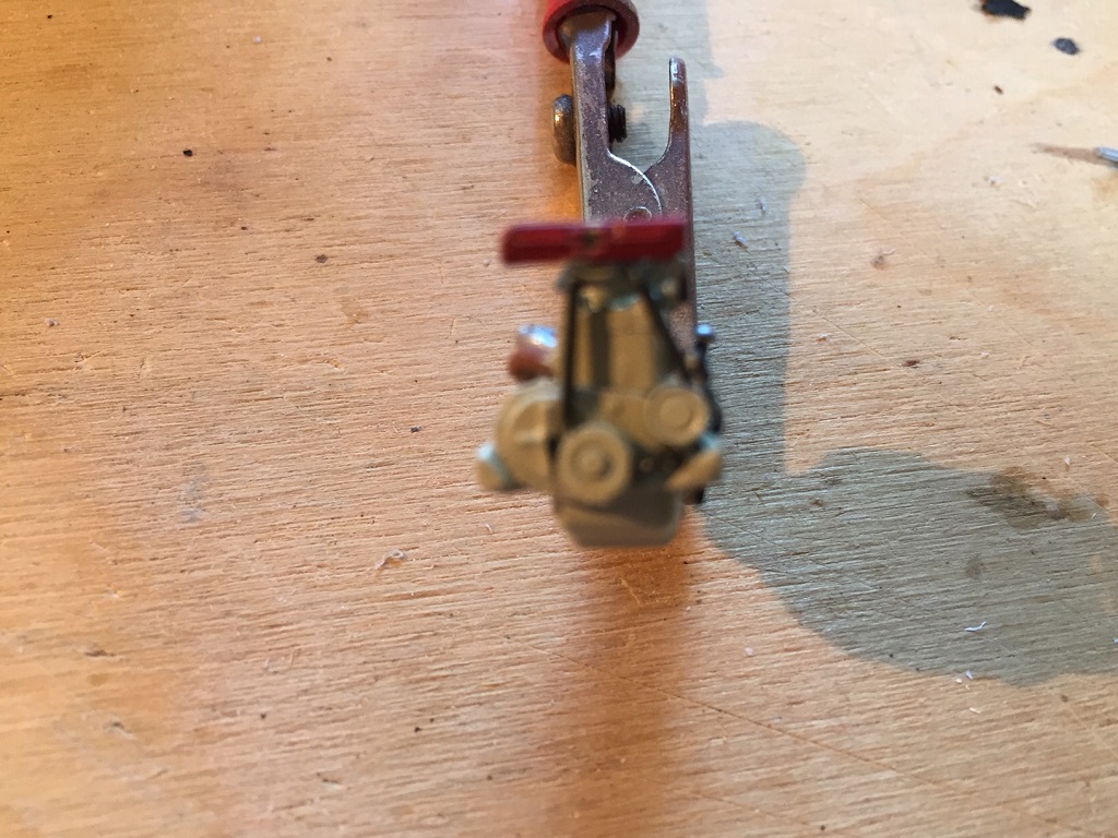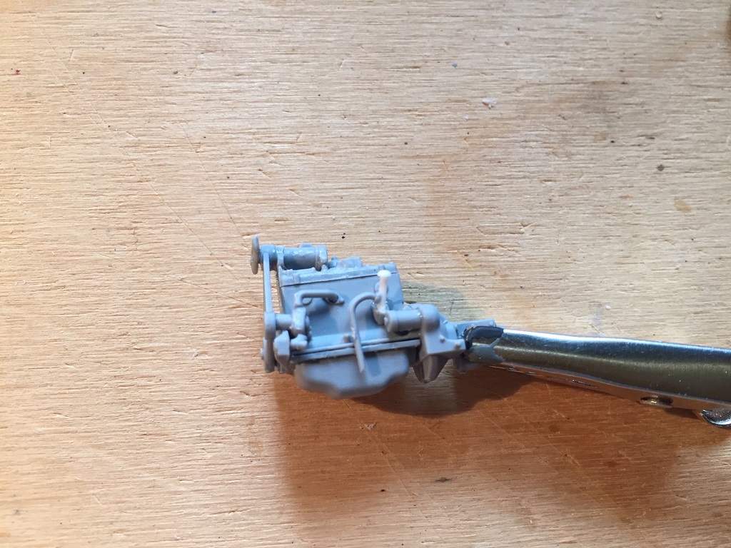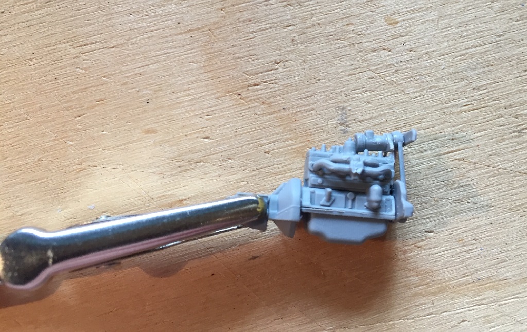 Der Motor hat auch schon etwas Farbe bekommen. Laut Bauplan sehr dunkel, aber ich habe mich an einem restaurierten Fahrzeug bzw. Motor orientiert.