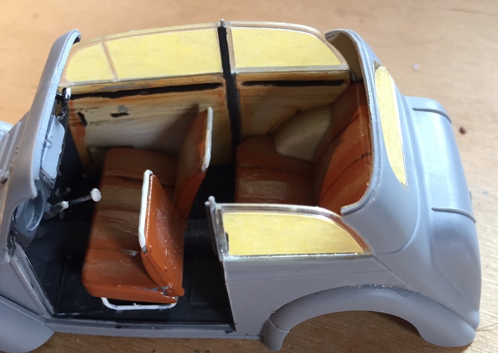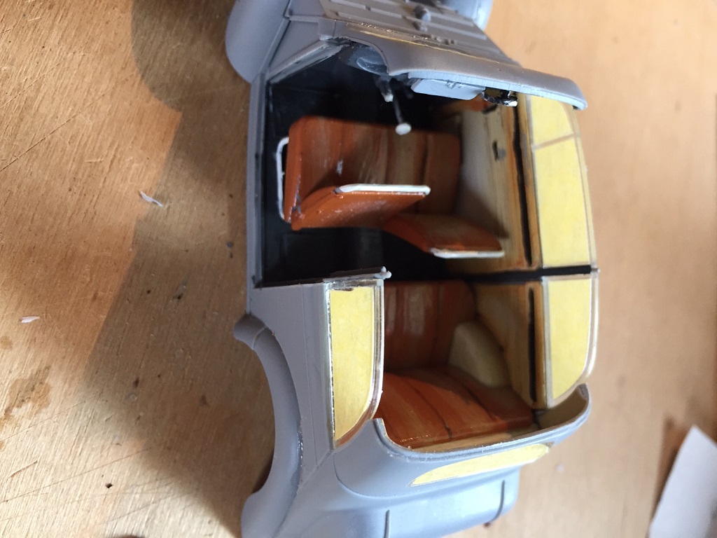Ich werde also den Innenraum erst komplett in Farbe machen und dann zusammenbauen. Die Fahrertür wird geöffnet. Das bring noch etwas Dramaturgie in das Dio. Die drei H´s wollen ja schnell helfen.