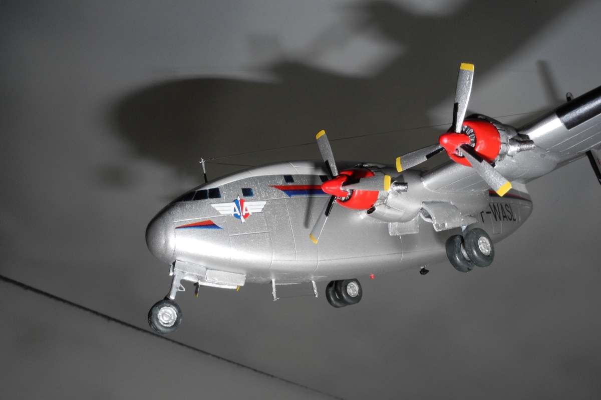 Was im Bausatz nicht vorgesehen ist, aber auf den Vorbildfotos im Web gut zu erkennen: Diese Maschine hatte rot lackierte Spinner an allen 4 Motoren sowie einfache Auspuffrohre. Und die Gestaltung der Antennenanlage obliegt bei F-RSIN-Bausätzen prinzipiell dem Modellbauer...