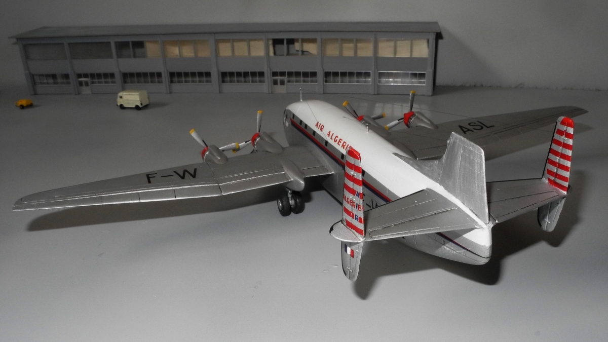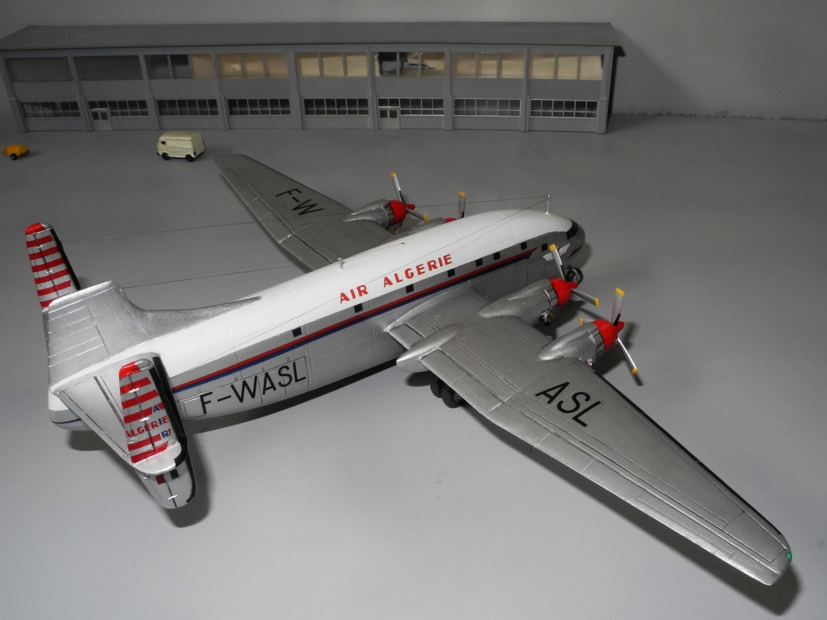 Die Breguet 761S war die erste "Serienversion" der Deux Ponts, es wurden drei Stück hergestellt. Die dargestellte Maschine war die Nummer zwei davon. Und die wurde noch während des Zulassungsverfahren von Air Algérie genützt, daher das etwas unübliche Kennzeichen F-WASL. Während dieser Zeit durfte nur Fracht damit geflogen werden, obwohl das obere Deck eine normale Passagierkabine hatte. Im Unterdeck gab es keine Fenster, es war bei dieser Maschine als Frachtraum gedacht.
