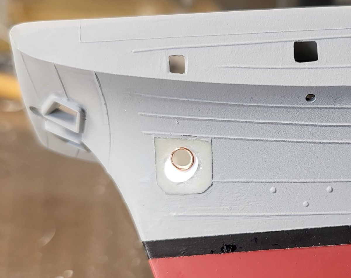 Hinter offener deck,Innen fertig und abgeschlossen Die Anker öffenung wahr viel zu Gross... also ...angepasst Zustand der Fluger, Tail-Flagge sind Hand gemahlt. Habe die linien auch gemahlt weil ich furchte die kleber konnte sich lösschen auf die dauer Aller öffenungen der Rumpfes sind Abgeschlossen... Uberblick des Schiffes