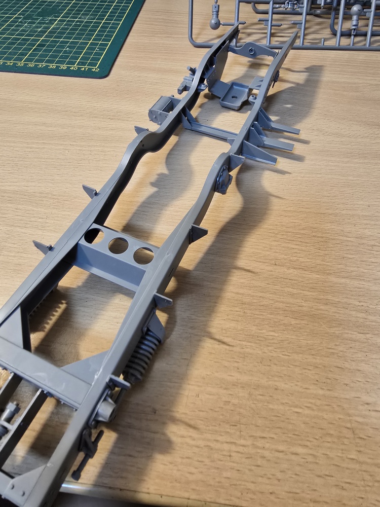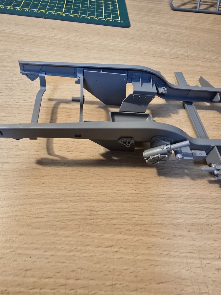 Das Grundgerüst des Halftrack steht somit . Ab jetzt kommen die Aufbauten und das Fahrerhaus .