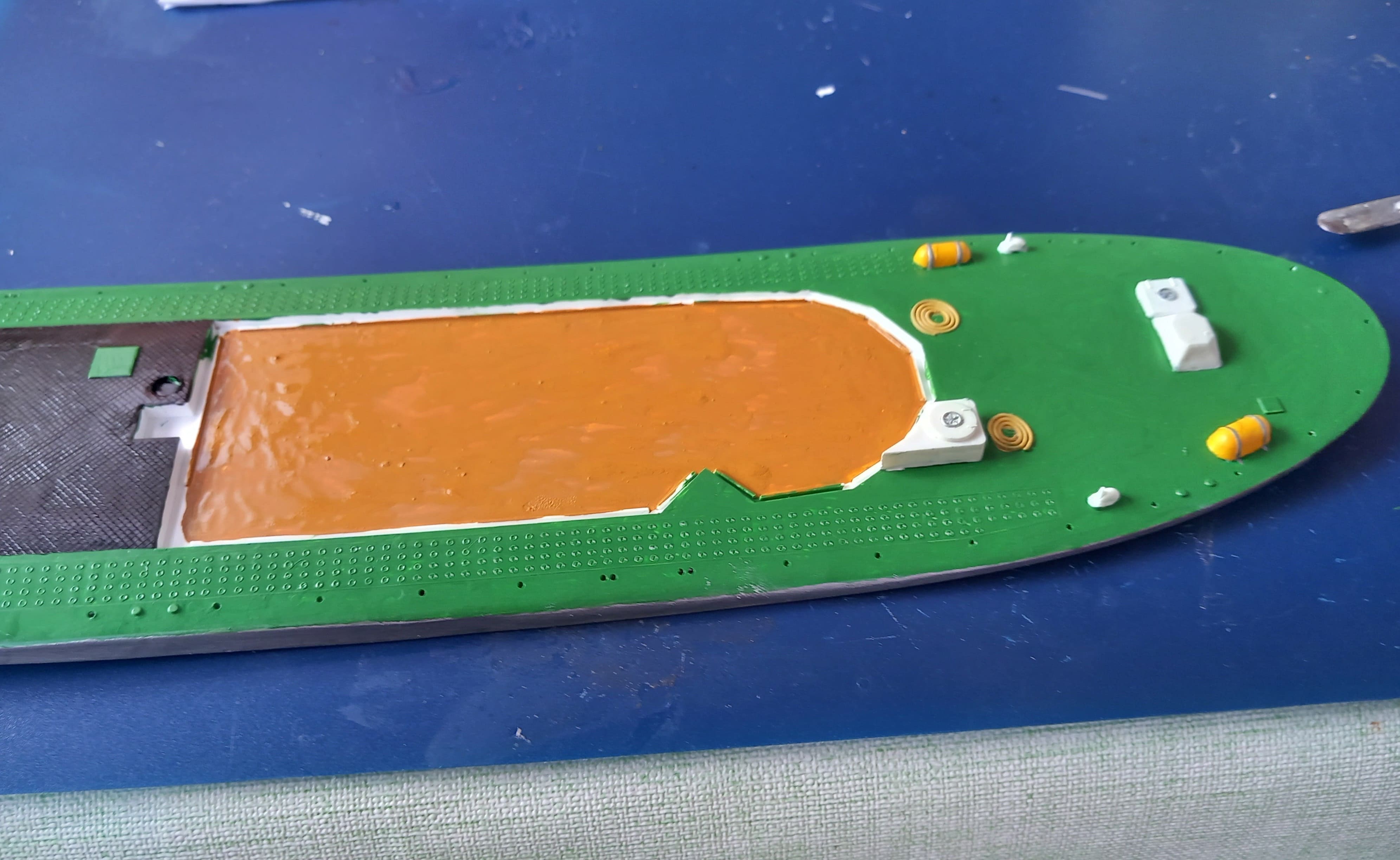 Schon beim Auspacken des Schiffbausatzes fallen Kanten und Plastikreste an diversen Bauteilen auf. Nachdem ich das Deck davon befreit hatte, kam die Bemalung ran. So sieht es jetzt aus. Gruß Ingo