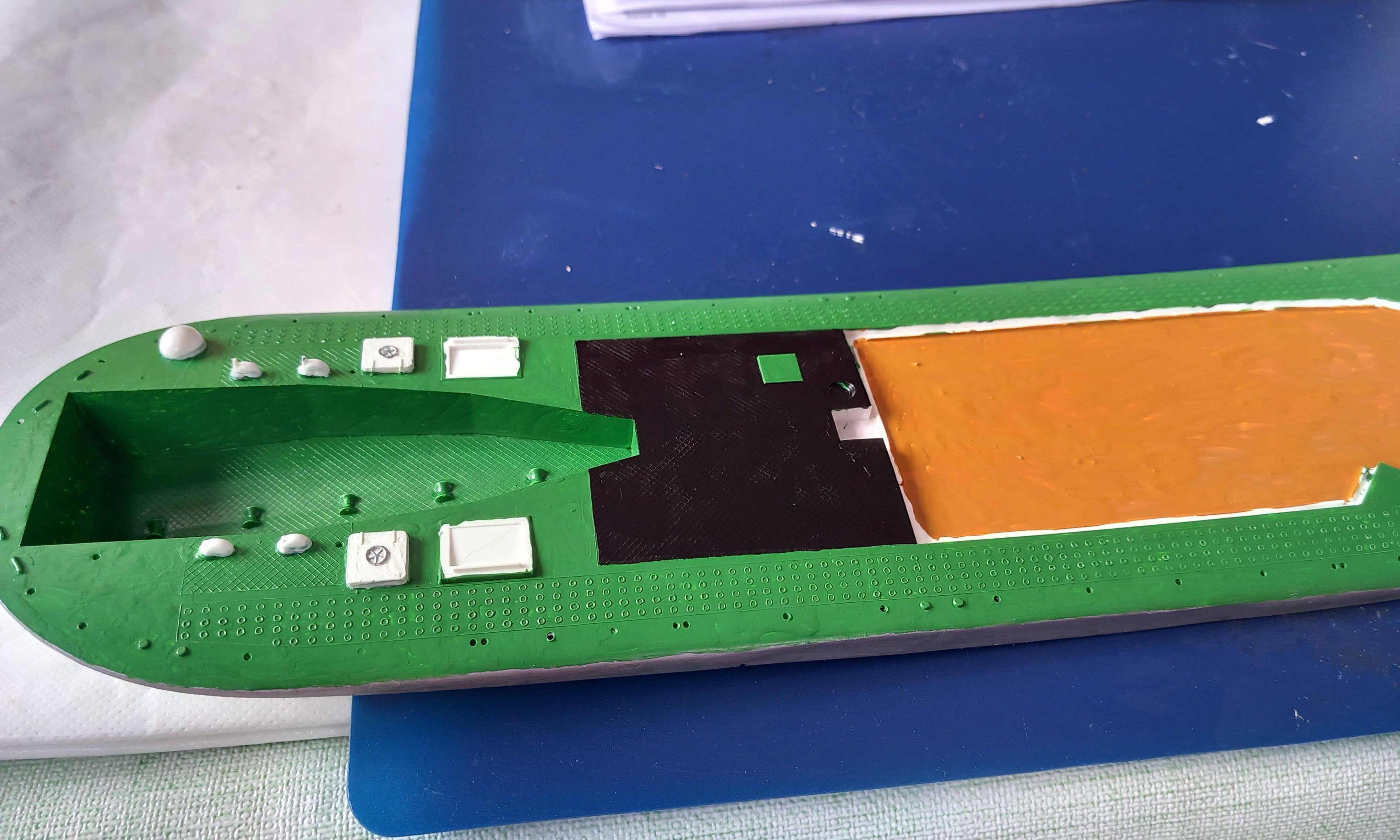 Moin und frohe Weihnachten! Es ging weiter an der Berlin. Der Führerstand ist fertig. Die Decals sind aufgetragen. Leider ist mir erst beim Betrachten dieser Bilder aufgefallen, daß überall Risse und Spalten vorhanden sind. Also nachträglich alles verspachelt und überbemalt. Wäre natürlich einfacher gewesen wenn mir das früher aufgefallen wäre. Aber ich habe es hinbekommen. Gruß Ingo[attachment=0]20250713_161511[1].jpg[/attachment