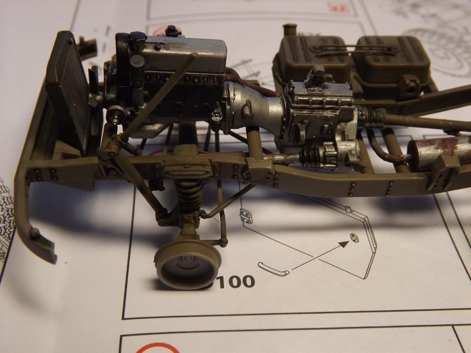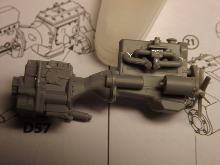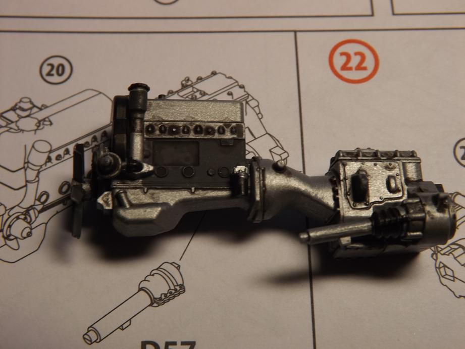 Zwischenzeitlich habe ich den Motor bemalt und mit einem schwarzen Washing versehen. Er passt super in den Rahmen.