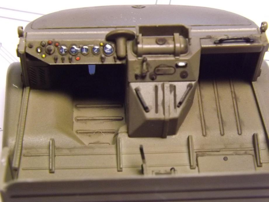 in den letzten Tagen ging´s nur langsam weiter. Ich habe ein Washing mit schwarzer Ölfarbe aufgelegt, die Armaturen bemalt und auf die Decals der Zifferblätter Glanzlack gepinselt - der Klarlack ist noch nicht trocken, weshalb er noch milchig wirkt: