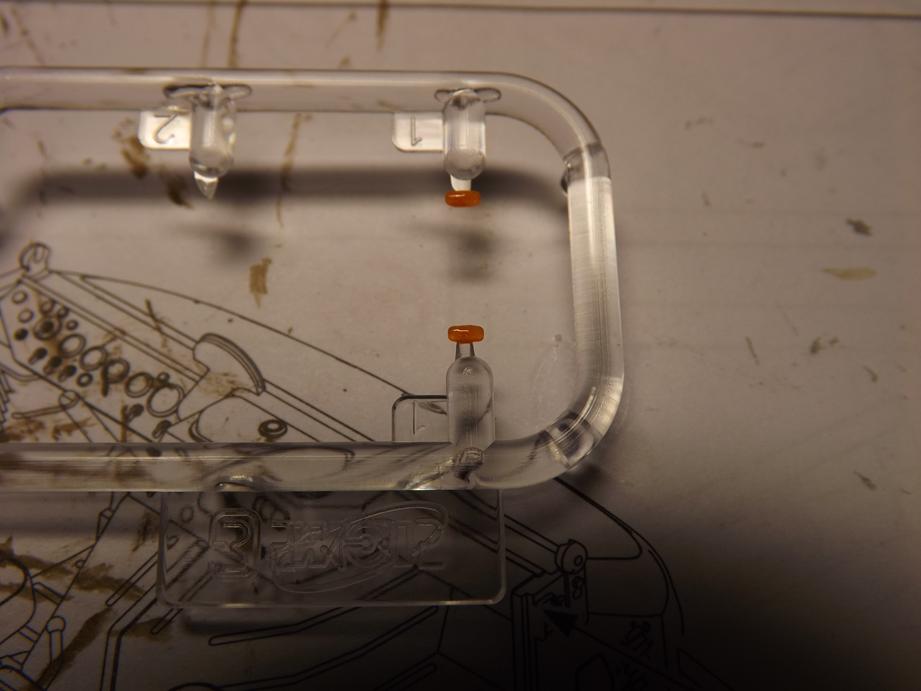 Die Blinkergläser bemalte ich mit einer Mischung aus viel gelber und wenig roter Farbe, das ich mit glänzendem Klarlack verdünnte. Das hat sich bereits in der Vergangeheit bewährt und erspart einen Topf mit durchscheinender Farbe für Blinkergläser. Davon werden ja sowiso nur einige Mikroliter benötigt