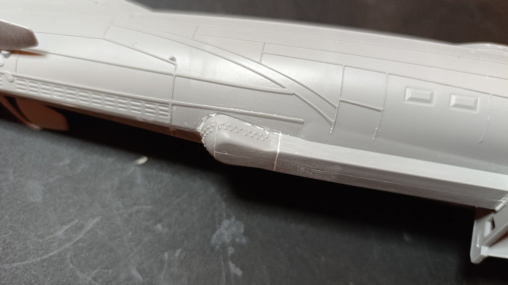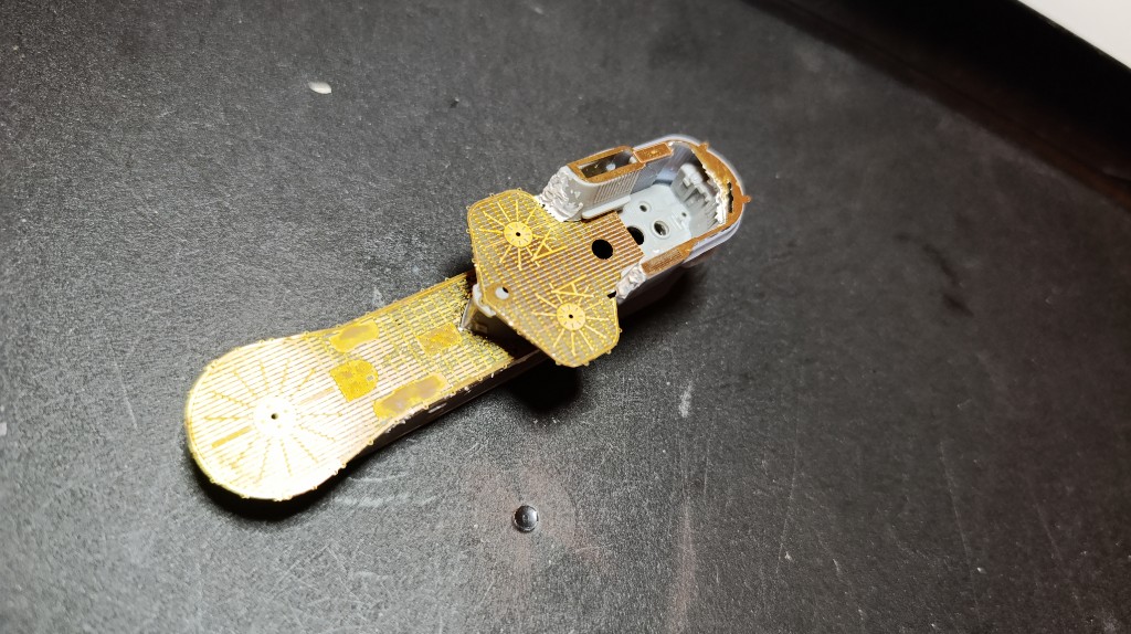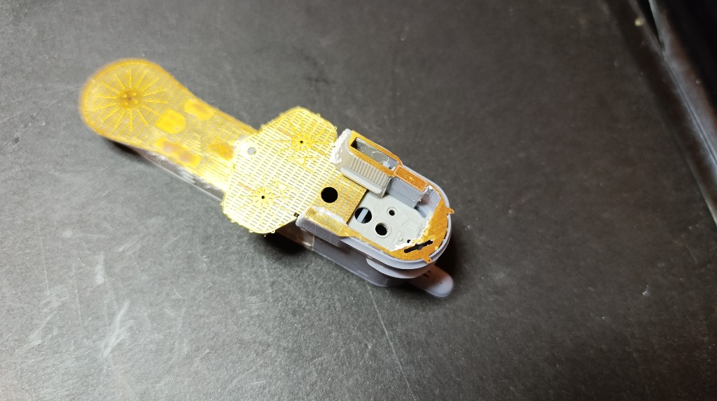 Eine so ein bisschen bin ich auch immer noch am Hadern ob ich nun die Plastikteile übernehme oder doch die PE-Teile. Gerade der Übergang der beiden Plastikteile vorne stört mich etwas und die ein oder andere Klappe ist besser dargestellt, auf der anderen Seite sind die Schienen am Plastik besser, was ich im PE nicht so gut hinbekomme