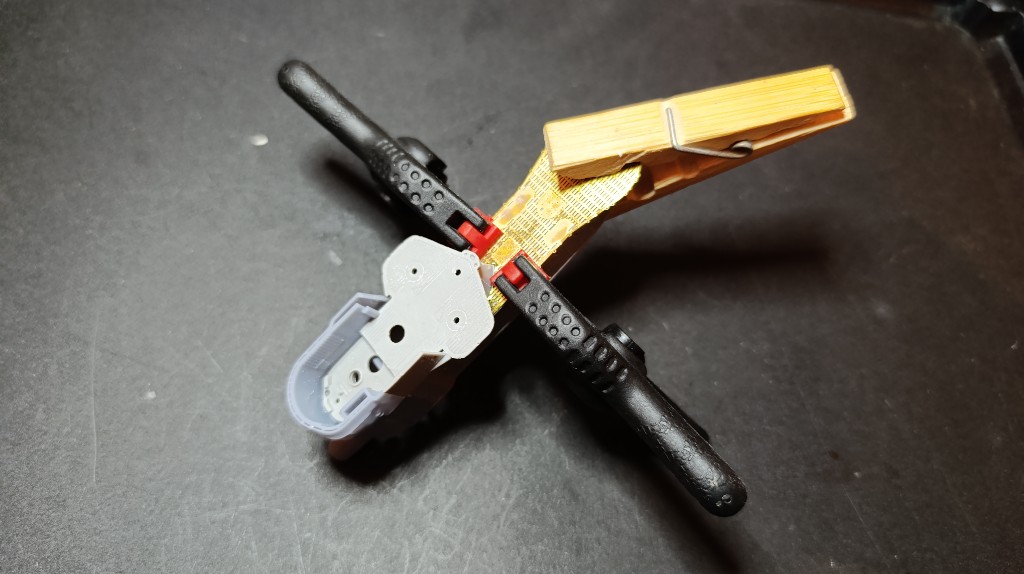 Jetzt konnte der Rumpf verklebt werden. Hier habe ich Sicherheitshalber ein paar Klemmen verwendet.