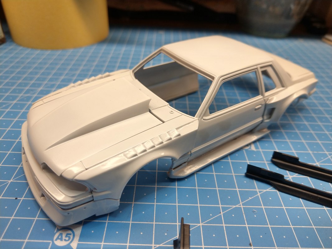 der Mustang wurde nicht nur einmal wieder zusammengeflickt und gerade gebogen. Und genau da, da geht die Reise hin. Er wird seine optischen Mängel haben - deshalb sind die Anbauteile nicht exakt verspachtelt ;-)