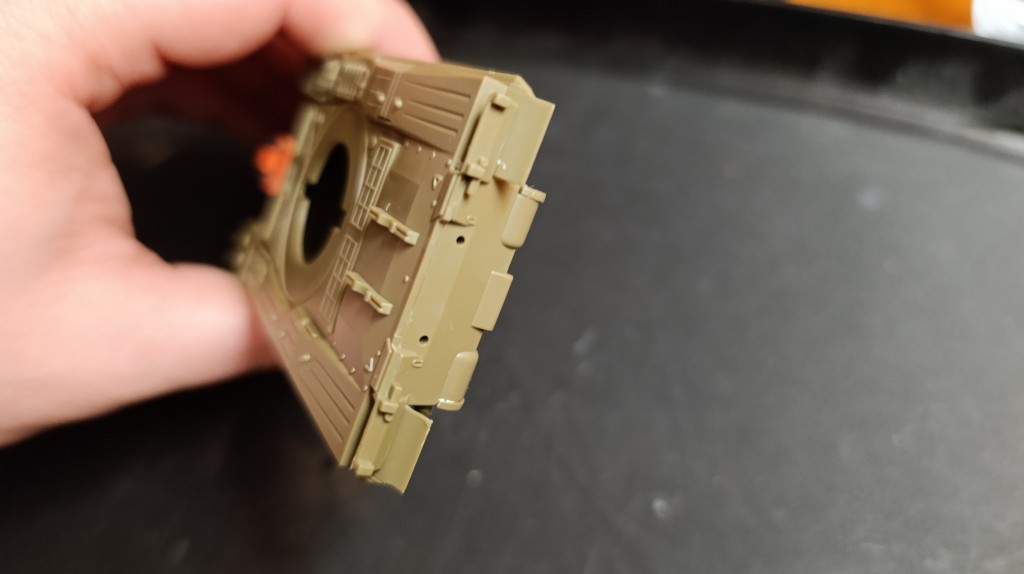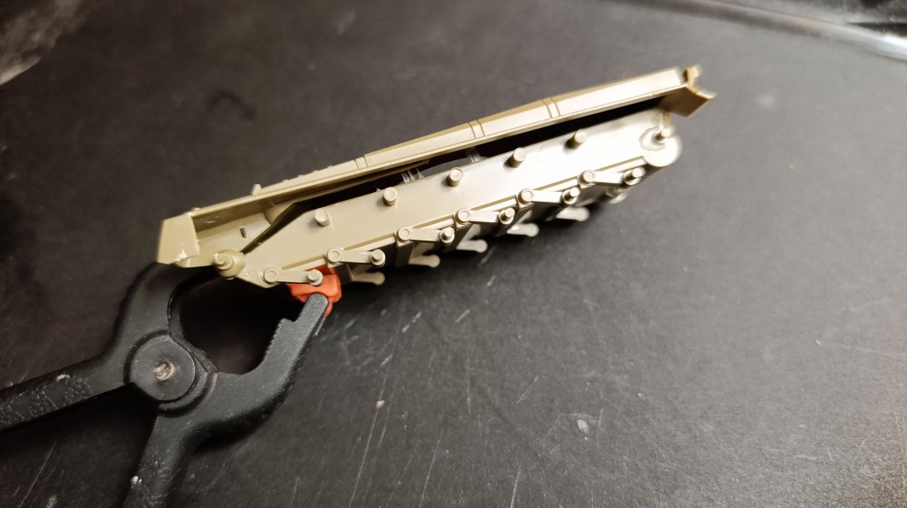 Die Seitenwände schließen nicht mit der Oberwanne ab. Ich dachte echt ich hab einfach ein Fehler beim bauen gemacht, aber nein das scheint so wirklich zu sein. Man achte auch auf die gut gemachten Rücklaufrollen... Das sind einfach nur Stäbe ohne Details. Das gute ist, dass man das alles unter der Kettenabdeckung Verstecken kann.
