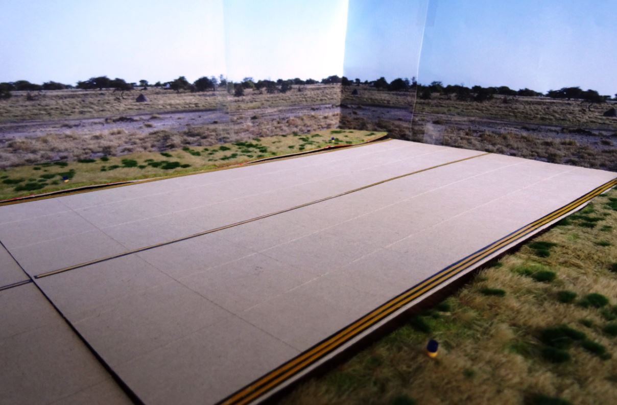 Für die Hintergrundtapete habe ich mal eine Landschaft, z.B. "die Karoo zu Beginn der Trockenzeit" ohne markante Details fotographiert, mehrfach ausgedruckt und mit Tesa aneinander geklebt.
