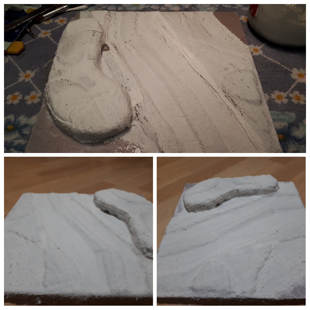 Wenn das getrocknet ist, mit groben Schleifpapier nacharbeiten, wo "nötig" und danach alles bemalen. Da bin ich aber nicht so der Künstler... Mehr der abstrakte Künstler...