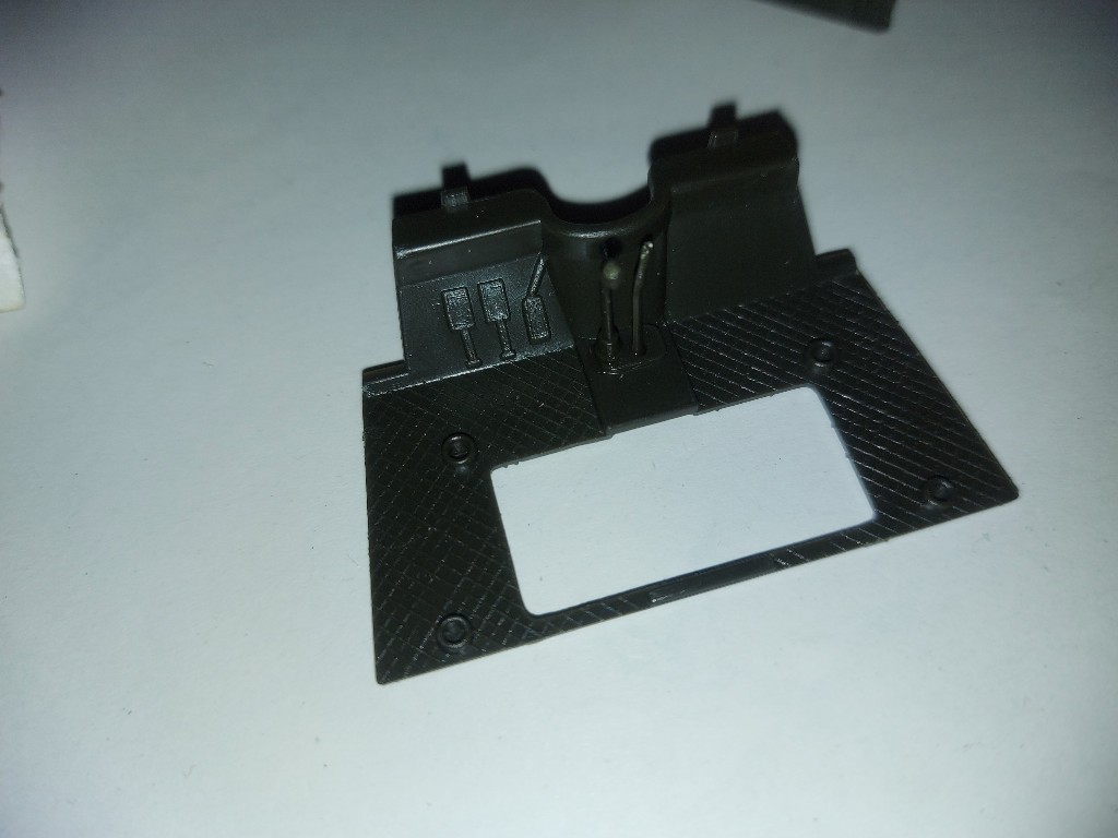 Da ja auch der Innenraum noch bemalt werden muss, die Figuren eingesetzt werden müssen und so weiter, musste ich ein weg finden später noch dort ran zukommen. So hab ich die Front des Führerstand, an die Motorhaube angebracht