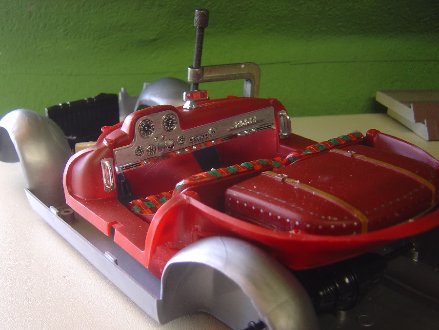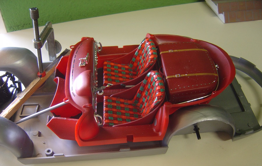 Die Abziehbilder für die Polster waren zum Abgewöhnen. Und ich mußte das halbe Hinterradgetriebe wegschneiden. Da lag der Innenraum auf.