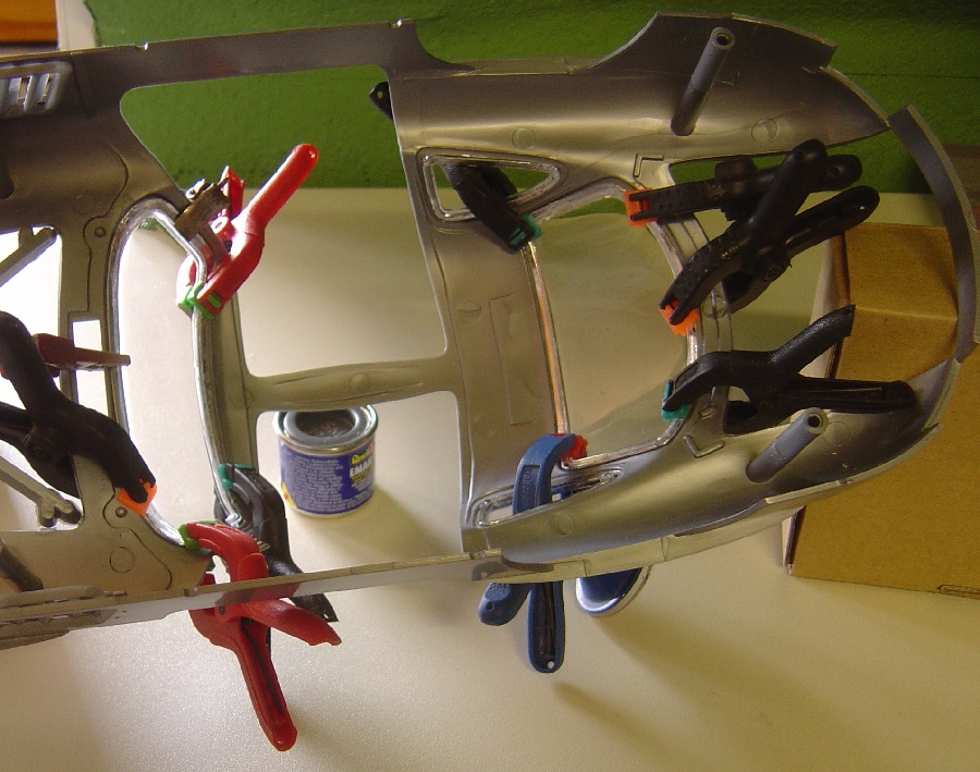 Die Spannung für die Frontscheibe war zu groß, ich musste sie jetzt mit Revell Tubenkleber einkleben ( wie vor fünfzig Jahren :D zurück zu den Wurzeln ).