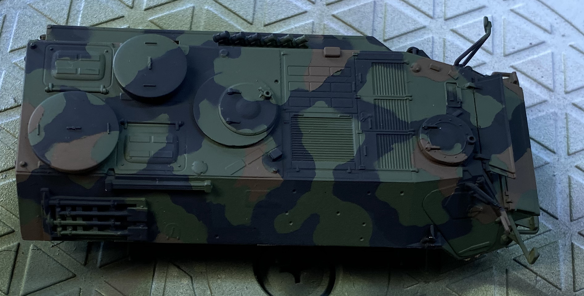 Das Ganze zwei mal und, dann hat man einen Panzer in Tarnfarbe.