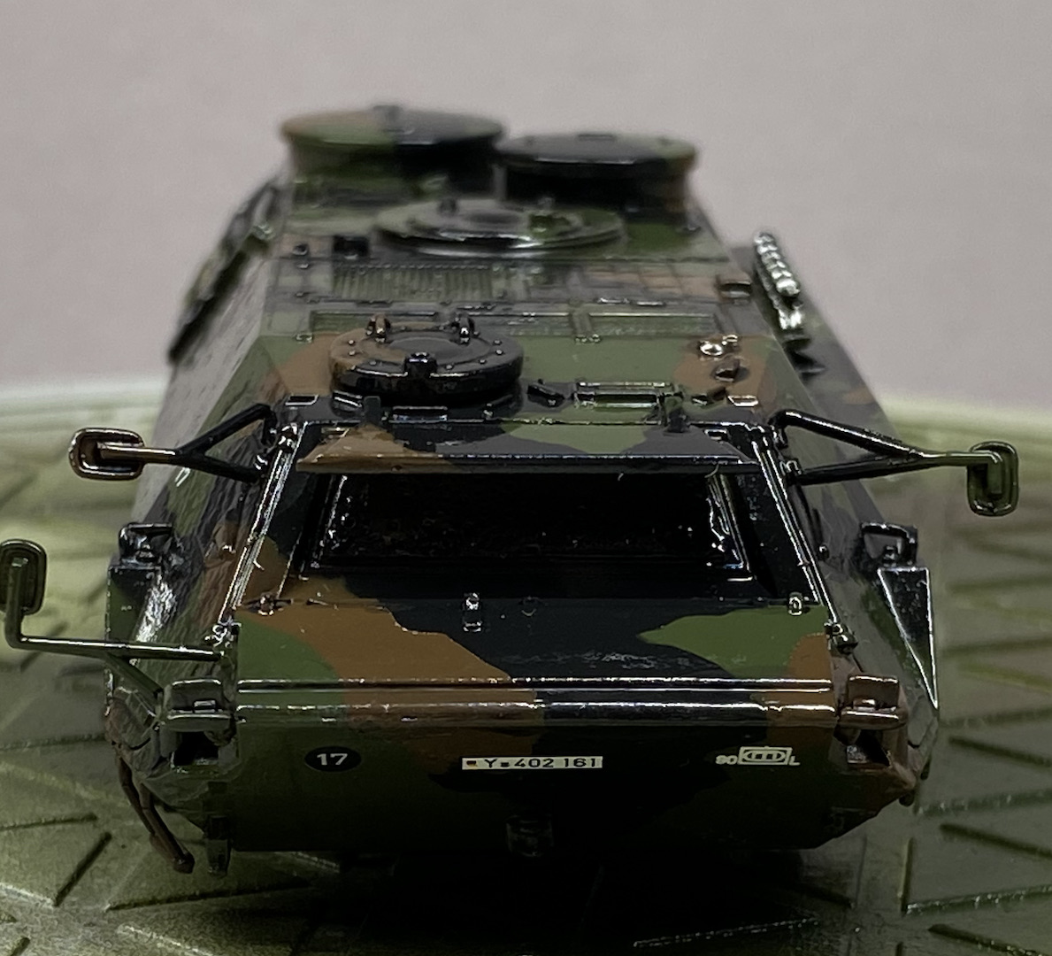 Dass er glänzt wie "Speckschwarte" ist jetzt nicht "militärtypisch", aber als gesamtes Modell, für mich, völlig in Ordnung. Die Kleinteile sind manierlich gesäubert und verbaut. Das ist aus meiner Sicht, weit, weit weg, von einem "Reinfall".