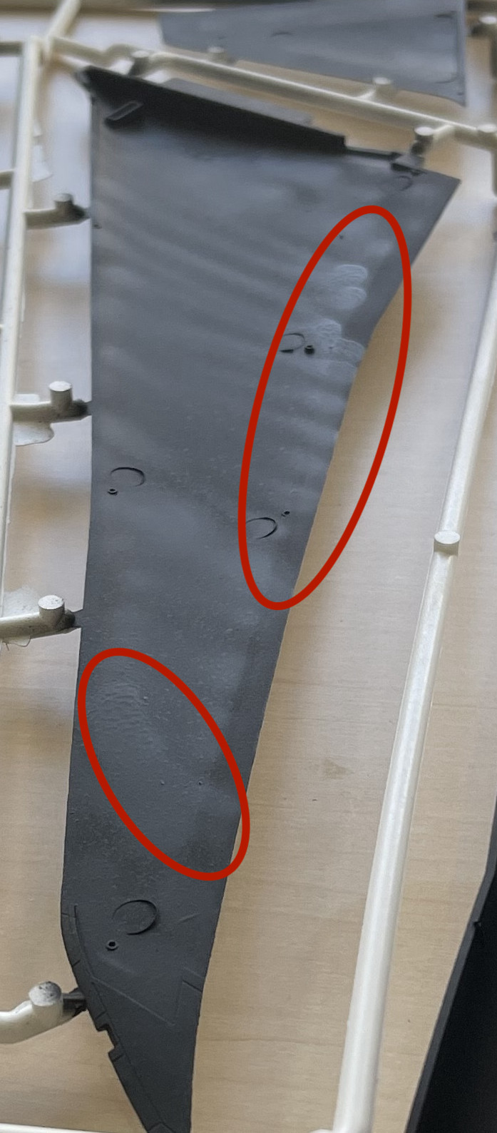Beim schwarz lackieren der Innenseite meiner Flieger erkenne ich unschöne Muster, die beim Sprühen entstanden sind.
