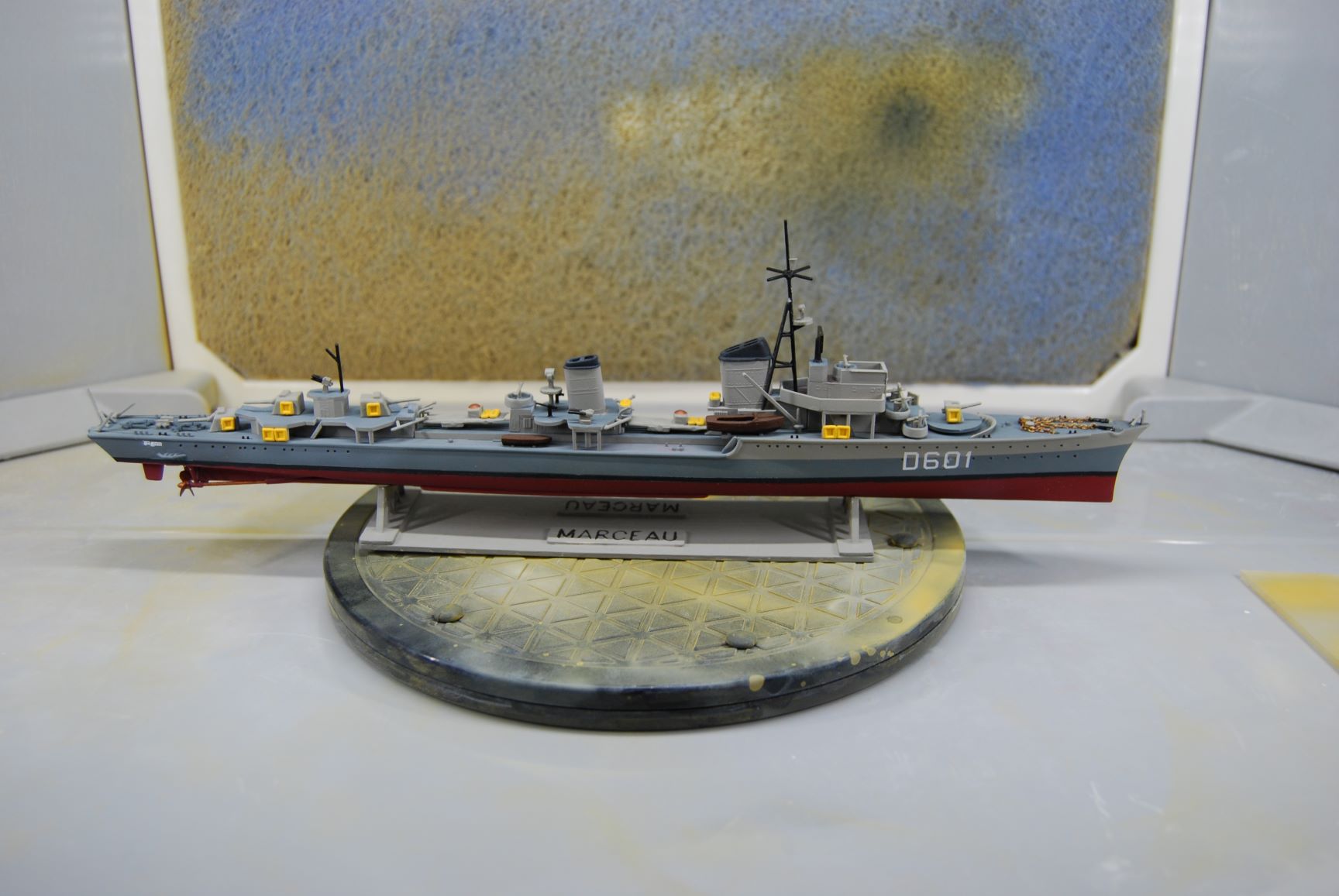 Damals habe ich den Klarlack mit 2,2 bar gesprüht. Die raue Lackierung am Schiffsrumpf stammt von der rauen Grundierung mit Email Basic. Ich weiß zwar nicht, ob ich Fehler beim Lackieren gemacht habe oder ob der Klarlack nichts taugt. Den Klarlack von Revell werde ich auf jeden Fall nur noch zum Pinseln nehmen. Gerne könnt ihr mir Tipps geben und andere Klarlacke empfehlen. Der Eurofighter in 1/32 von Trumpeter, den mein Sohnemann zu Weihnachten bekommen hat, soll jedenfalls nicht so enden.