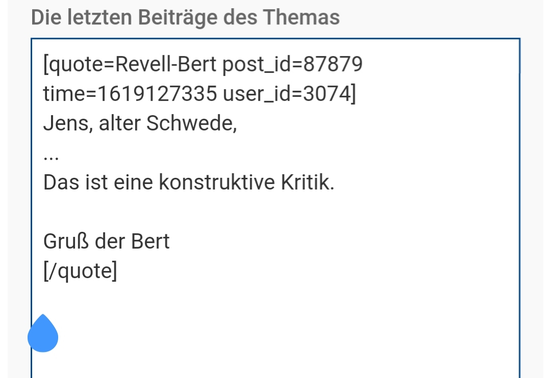 Ich muss aber ganz ehrlich eingestehen, dass ich bisher nicht gemerkt habe, dass der zitierte Text mit einem blauen Strich auf der linken Seite markiert ist. Aufgrund der Forensoftware in anderen Foren bin ich diese Zitierweise halt gewohnt. Danke für deinen Hinweis!