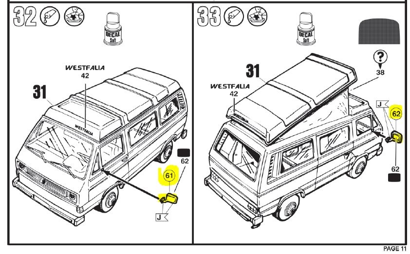 Fällt mir was ein: achte auf die Außenspiegel. In der Bauanleitung werden sie wahrscheinlich falsch nummeriert sein. Die Ausrichtugn ist so, wie es auf dem Kartonbild zu sehen ist. Die lange Seite steht senkrecht - nicht quer.